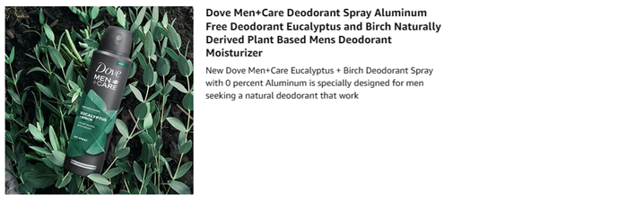 • Cruelty-free natural deodorant for men. Globally, Dove deodorant does not test on animals