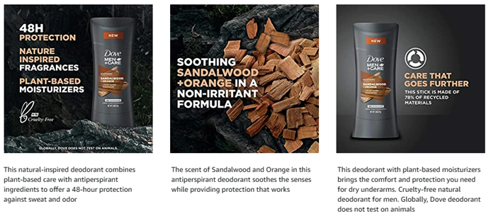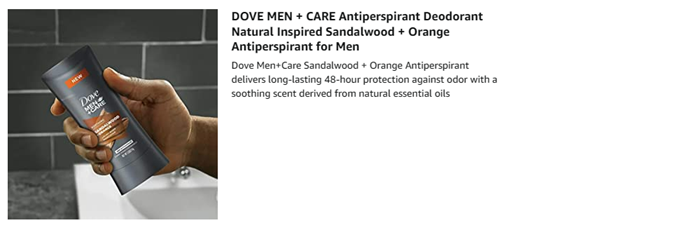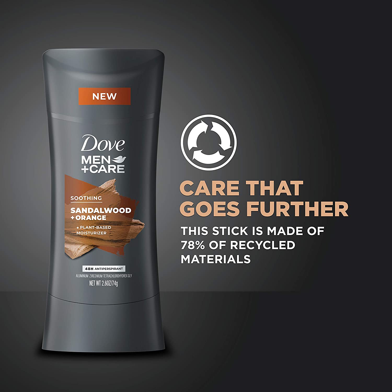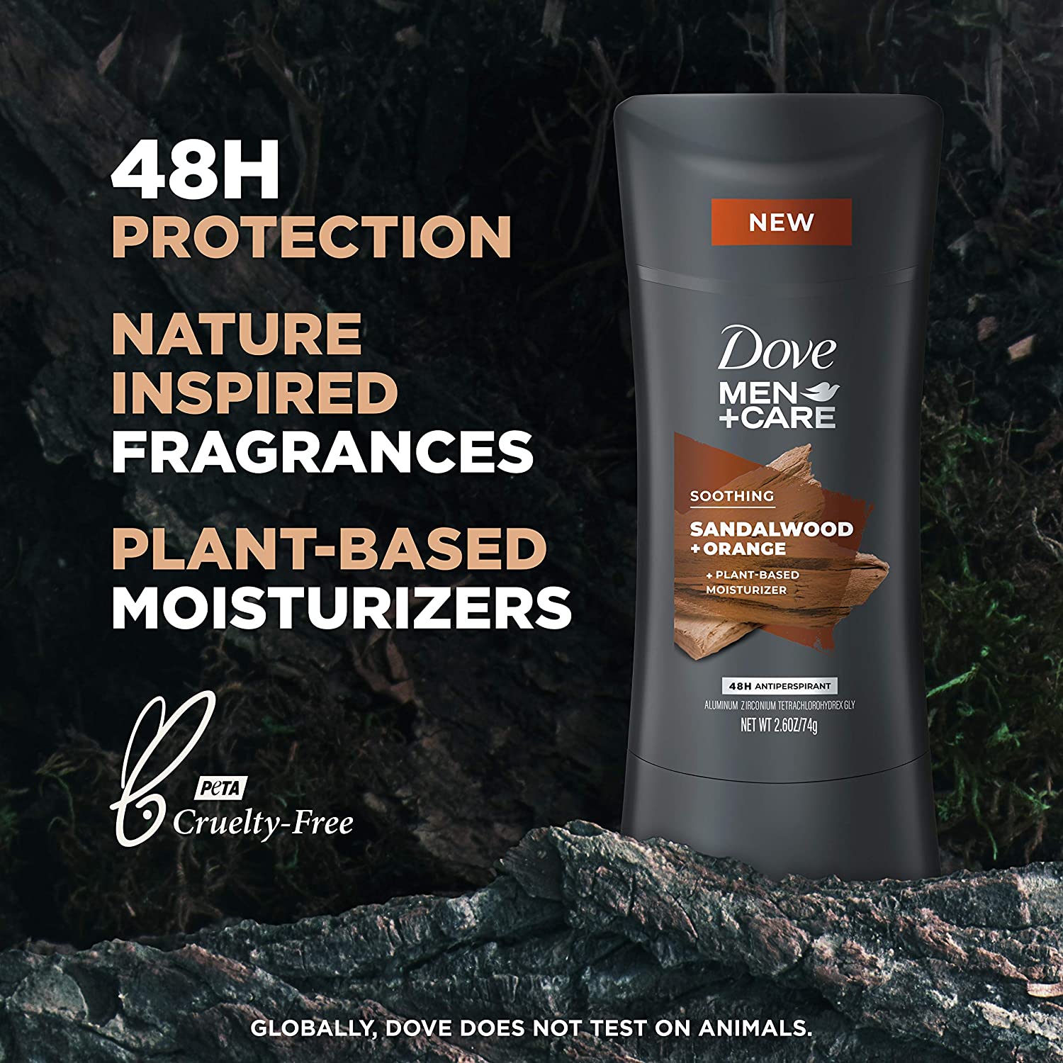 • Dove Men+Care Sandalwood + Orange Antiperspirant delivers long-lasting 48-hour protection against odor with a soothing scent derived from natural essential oils