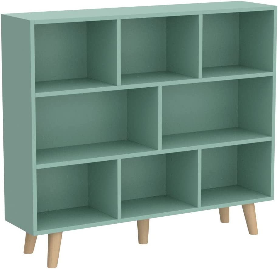 IOTXY Wooden Open Shelf Bookcase - 3-Tier Floor Standing Display Cabinet Rack with Legs, 8 Cubes Bookshelf, Tiffany-Green