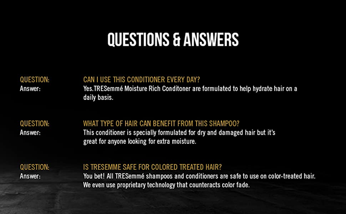 There’s just something about a trip to the salon that makes you feel good about yourself. With TRESemmé products, you can enjoy a professional-quality experience every day. Moisture Rich Conditioner is a moisturizing system formulated with Vitamin E and Biotin to target dryness and lock in moisture where your hair needs it most.