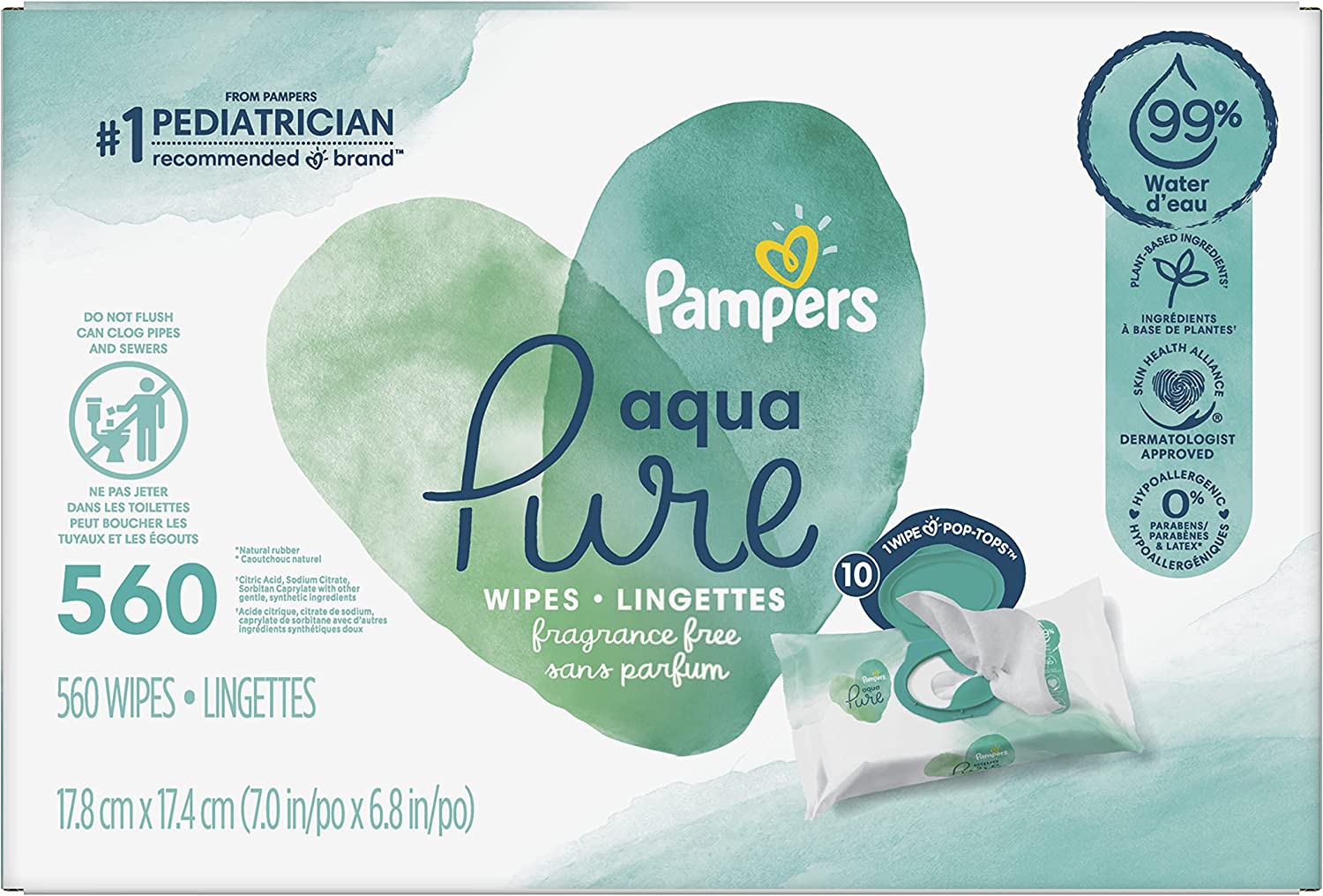 Pampers Aqua Pure Sensitive Baby Wipes 10X Pop-Top 560 Count