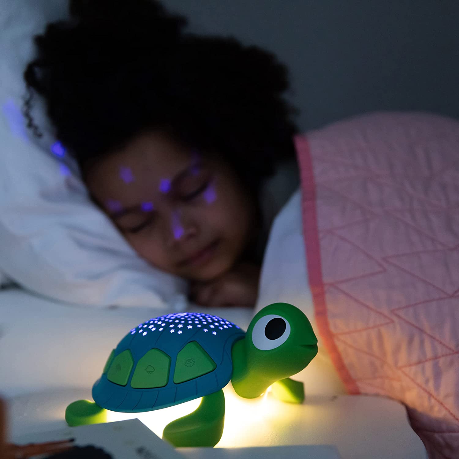 • NIGHT SKY CEILING PROJECTOR Project a constellation pattern with the turtle projector night light with three colors and customizable projection. Create a calming ambiance with a spectrum of colors.