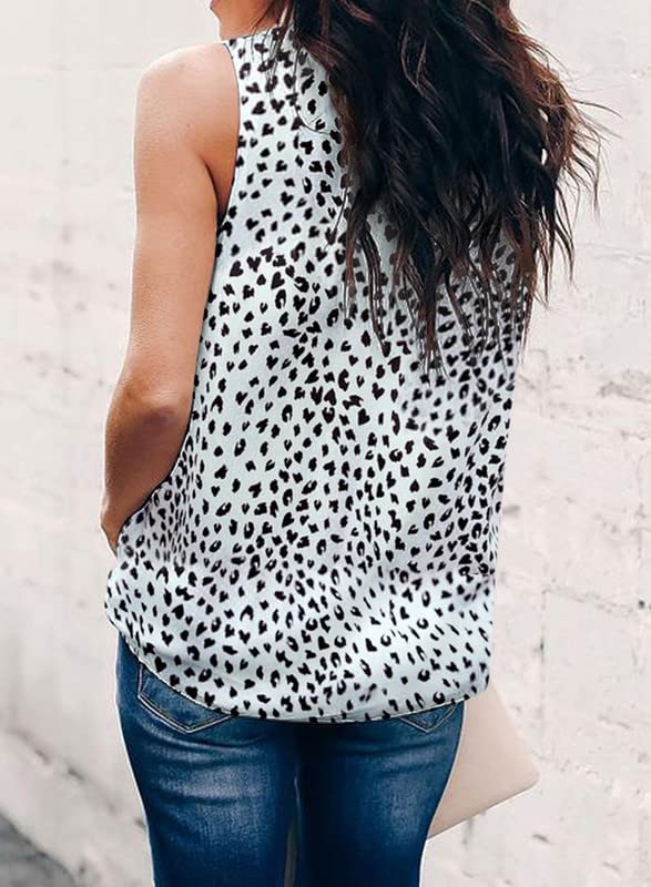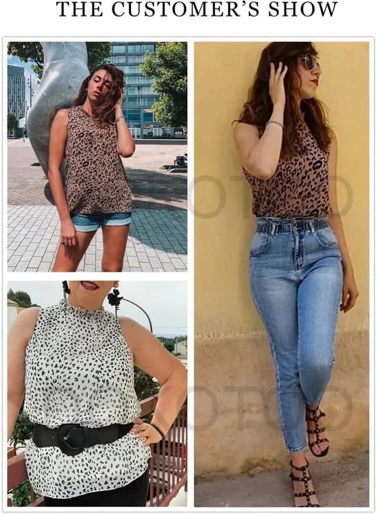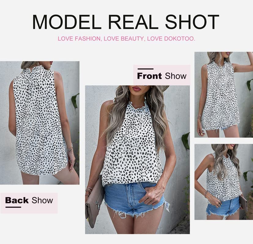 Dokotoo Womens Casual Sleeveless Shirts Halter Neck Leopard Print Tank Top and Blouses