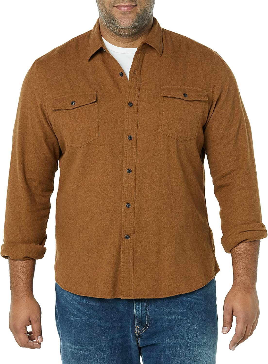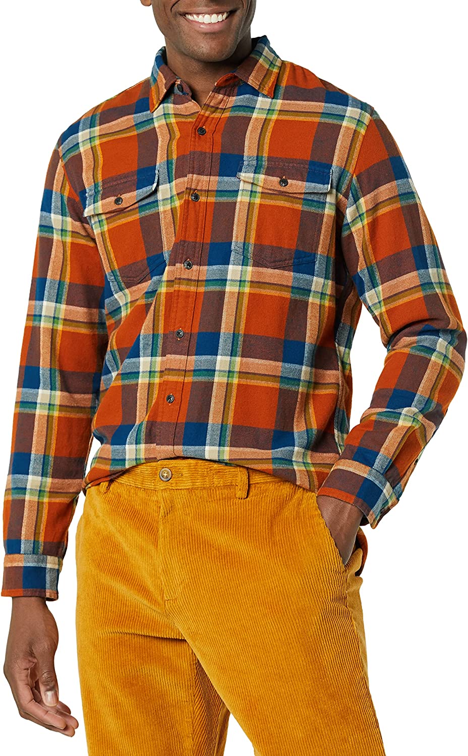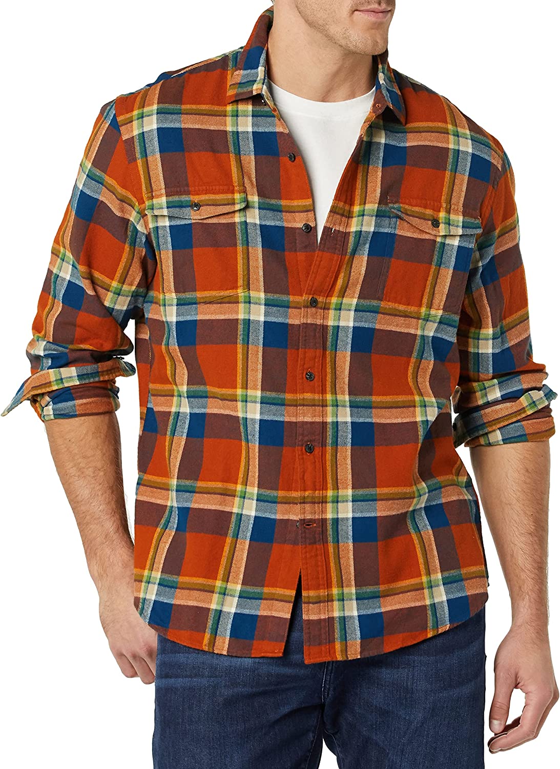 Amazon Essentials Men's Slim-Fit Long-Sleeve Two-Pocket Flannel Shirt