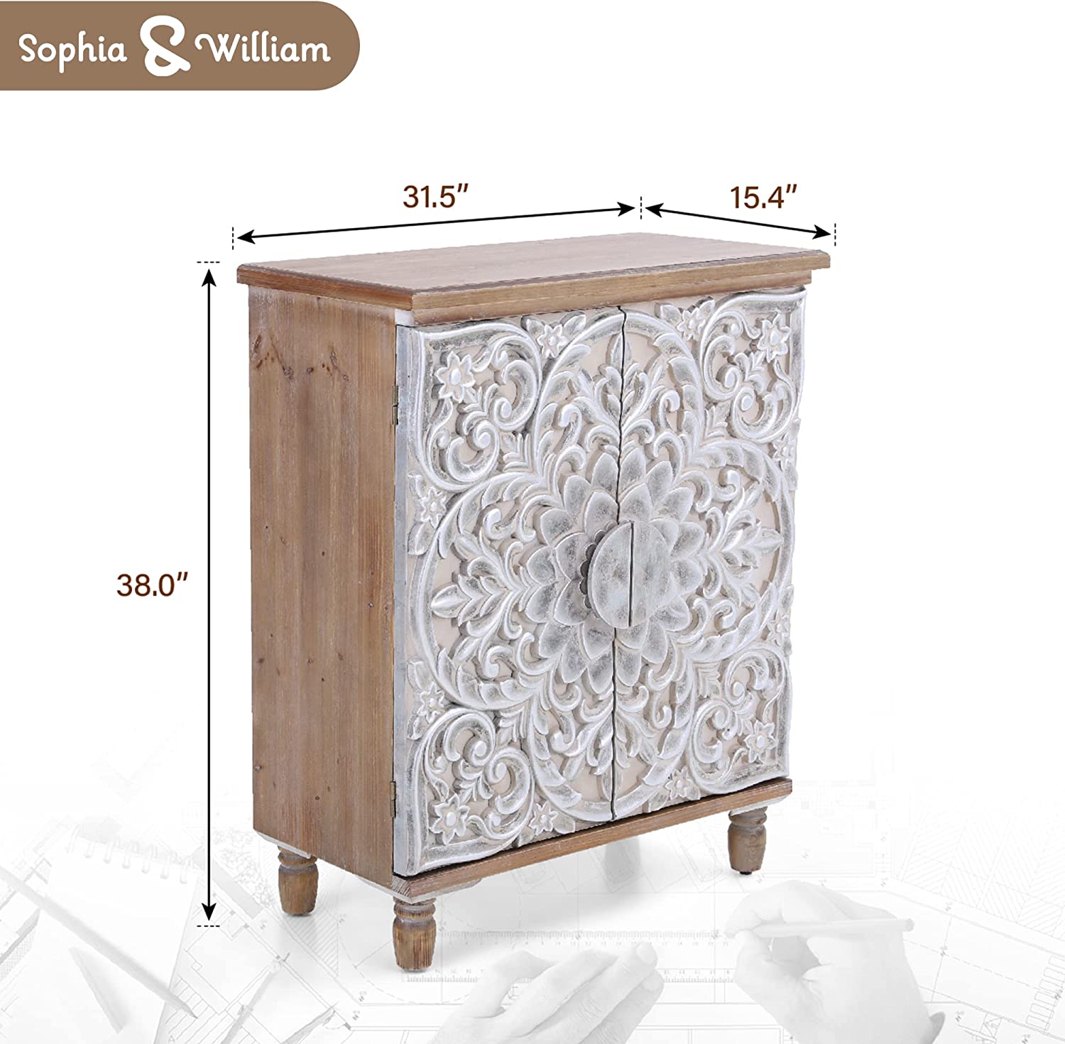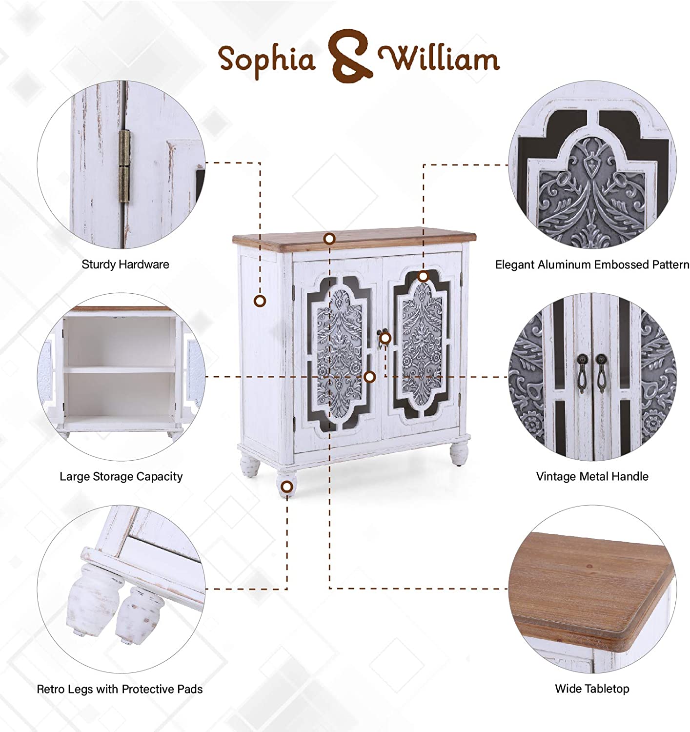 Sophia & William Accent Storage Cabinet with Wood Frame and Iron Embossed Painted Door, Distressed Floor Cabinet for Entryway Bedroom Living Room