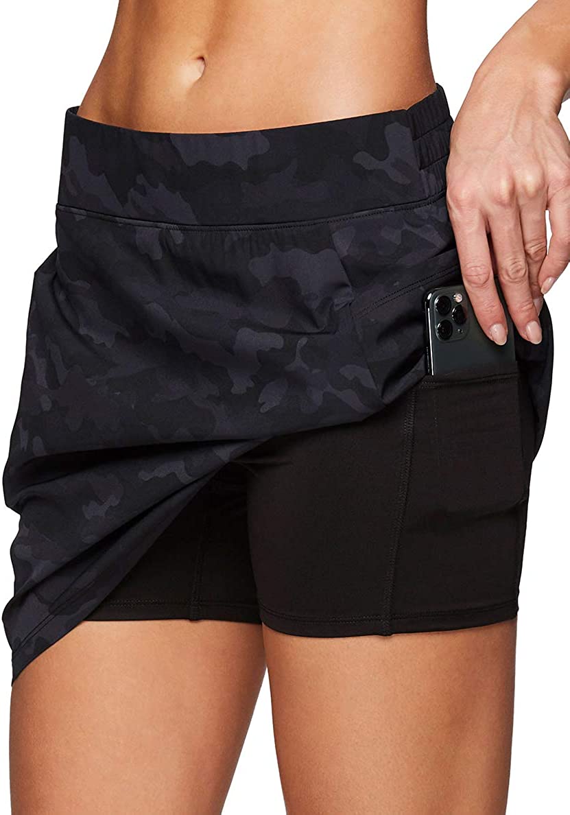 Attached bike shorts underneath with a 4.5" inseam and small compression pocket that fits most cell phones