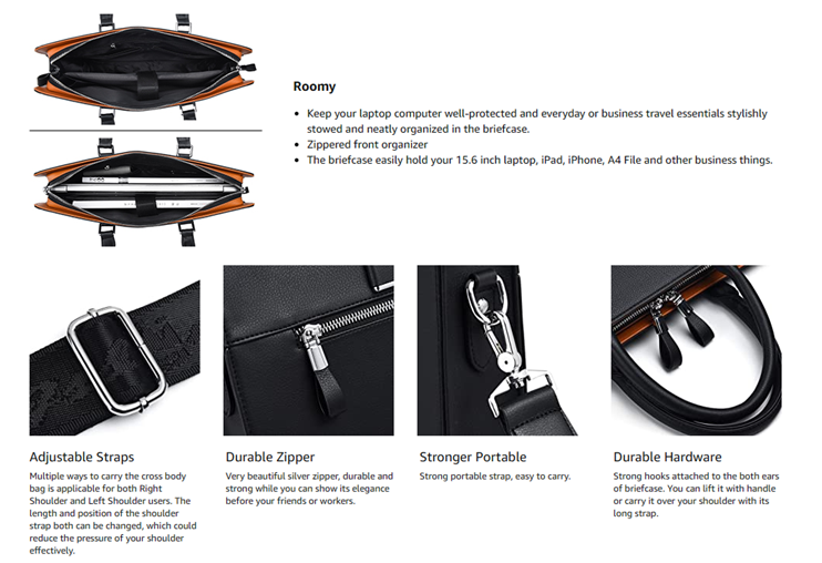 Stylish -- Hand made by professional artisans. Can be used as lawyers briefcase, laptop bag, or hand carry functional briefcase. Classic design is perfect for business men and women.