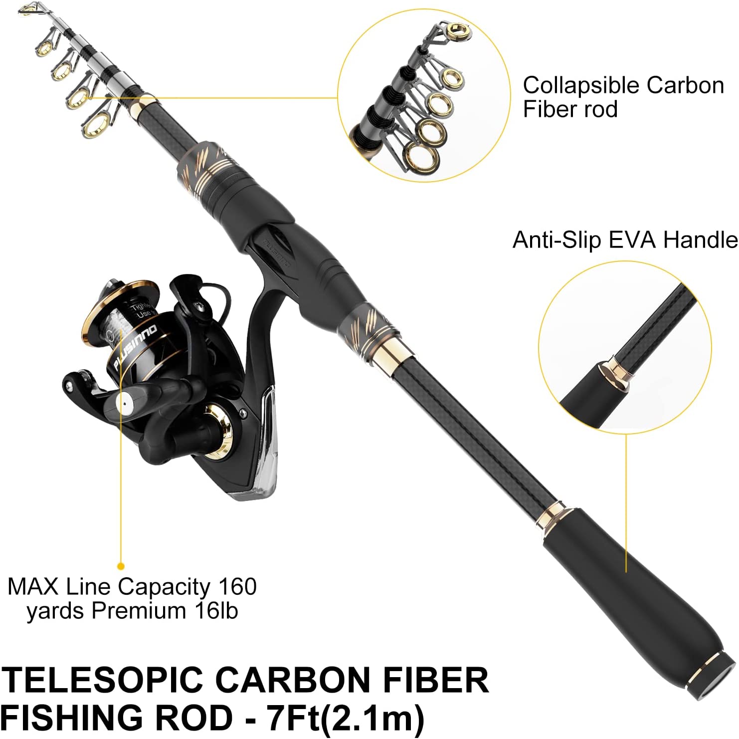• 【Fishing Rod and Reel Combos】: Warm Prompt: You will receive a carbon telescopic pole and a spinning reel .The smallest length just is 41cm,it could be packed easily into backpacks, luggage, You could take the fishing combos go anywhere to fish and travel. Just enjoy the fun of fishing.