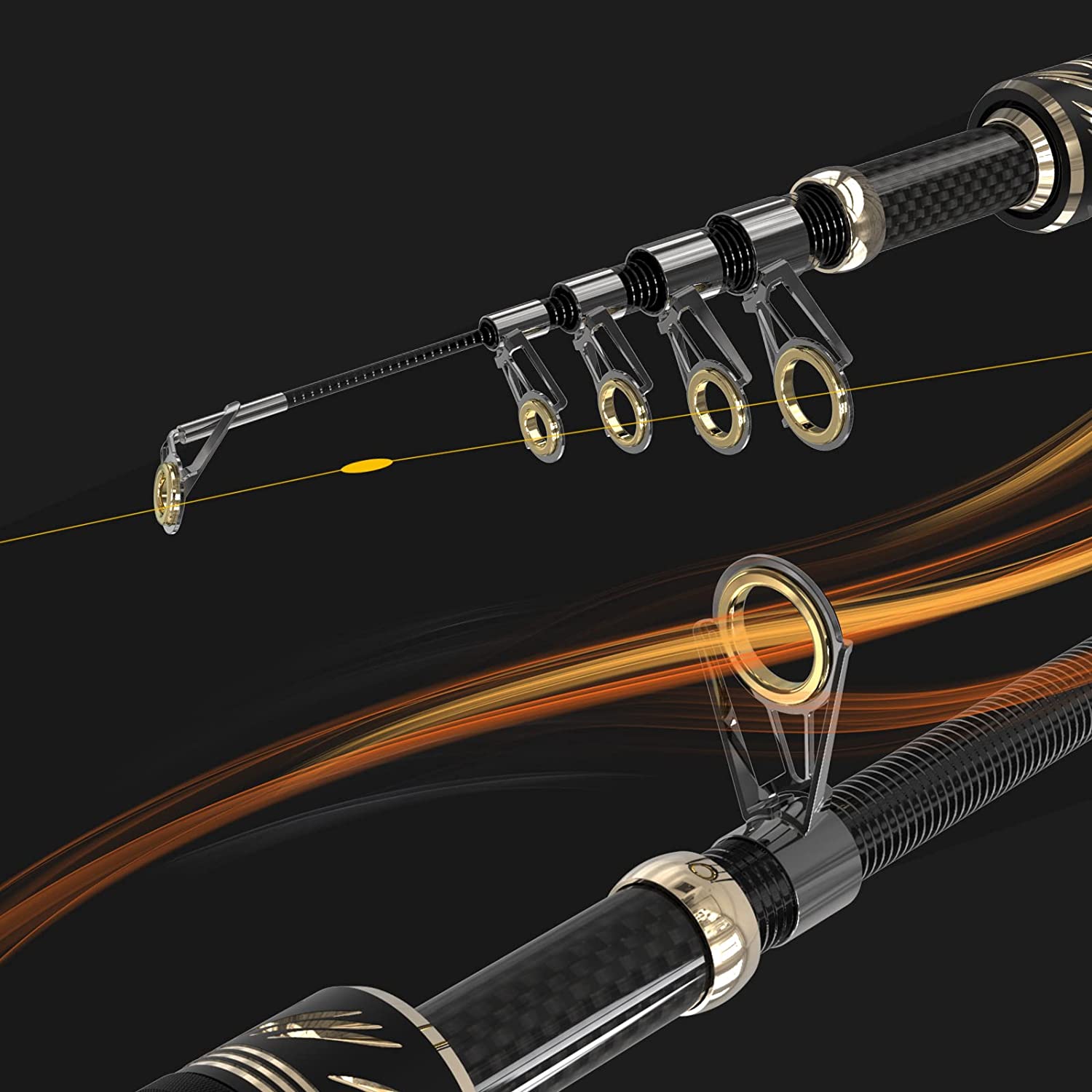 • 【Super Smooth Power】Stainless steel guides with Ceramic inserts makes it more smooth and durable, avoids line sticking into the guides, minimizes friction .And Its International Advanced Epoxy Resin Adhesive Make The Guide Ring More Solid.