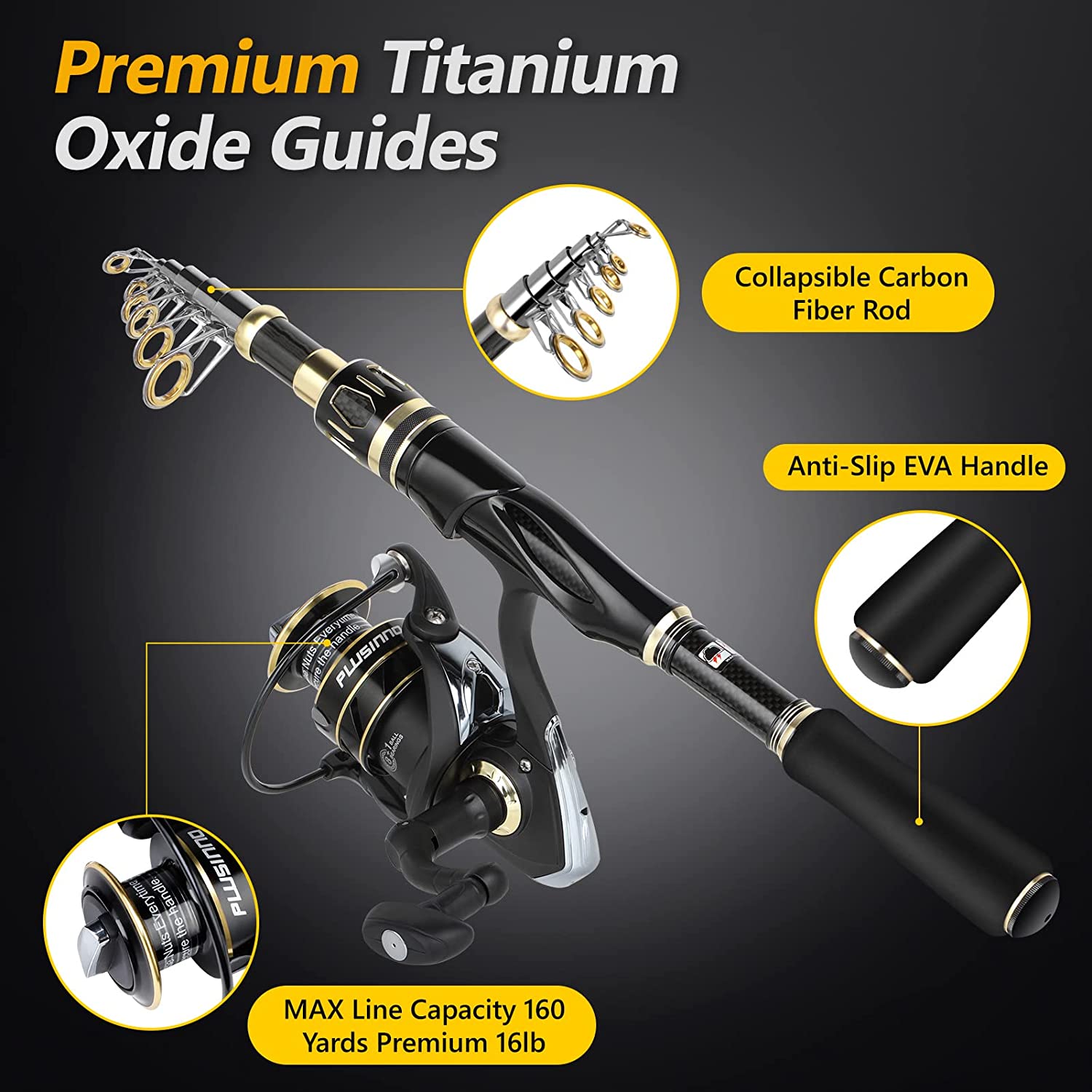 PLUSINNO Fishing Rod and Reel Combos Set,Telescopic Fishing Pole with Spinning Reels, Carbon Fiber Fishing Rod for Travel Saltwater Freshwater Fishing…