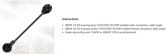 - NEMA 14-30P Male to 10-30R Female Four prong Converter