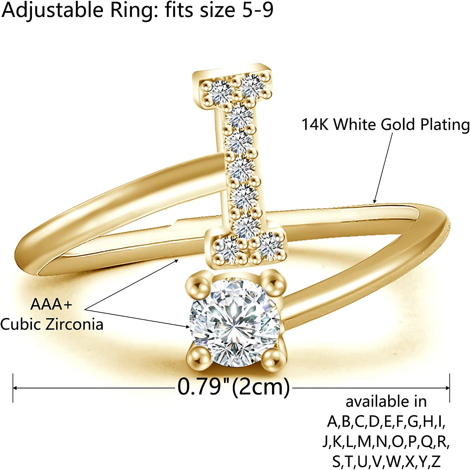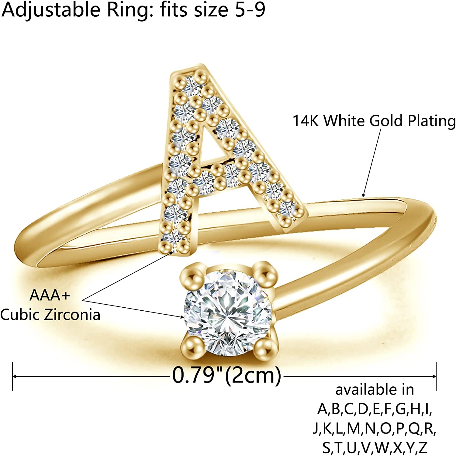 • HIGH QUAITY MATERIAL: Made from high quality copper with gold plated, each of these girls rings are hand set with beautiful cubic zirconia stones. This alphabet ring is classic and elegant that people of all ages can enjoy them.