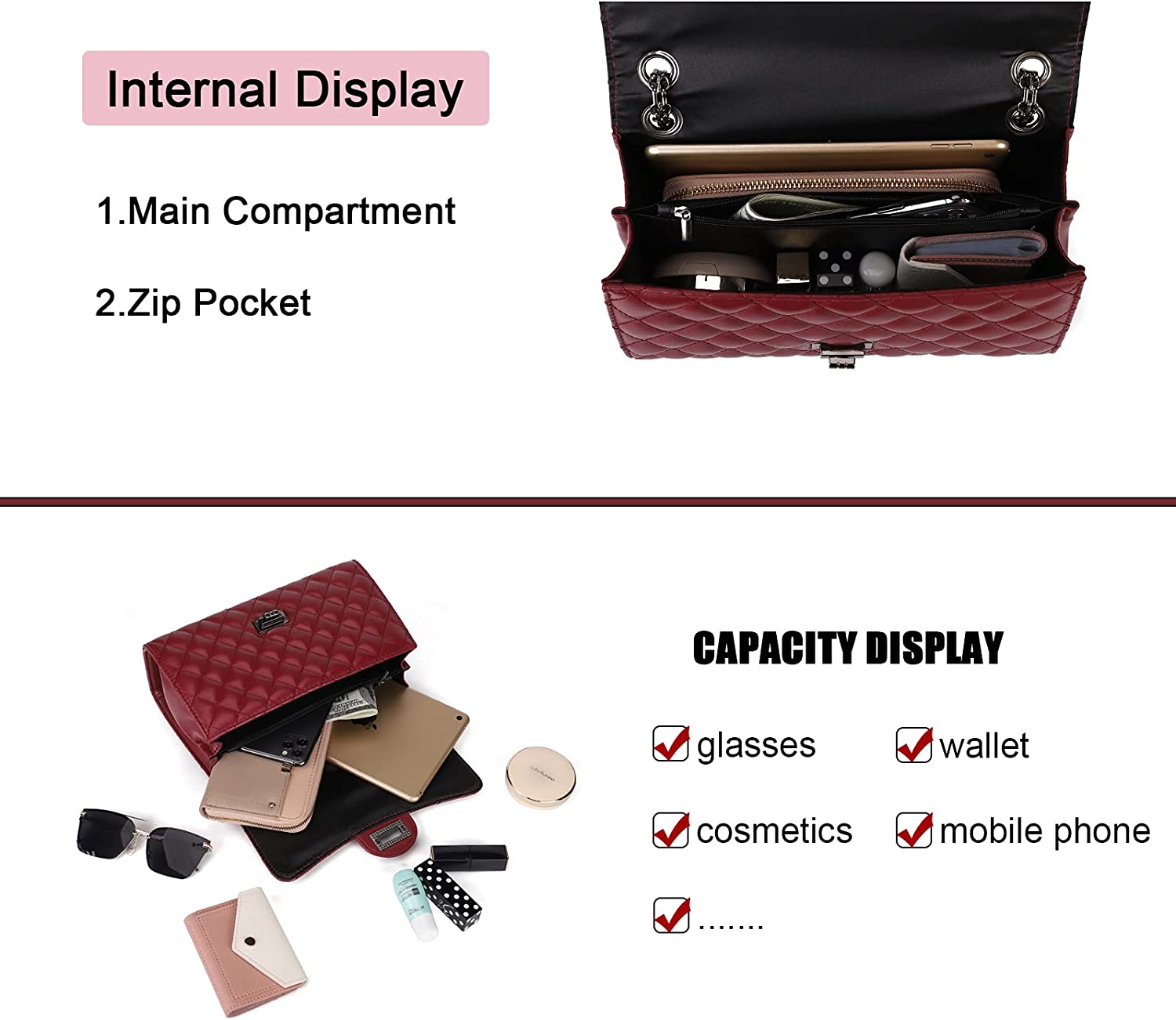 High Quality Material: Our crossbody bag is made of high-quality PU Leather.It comes with a trendy chain shoulder strap.