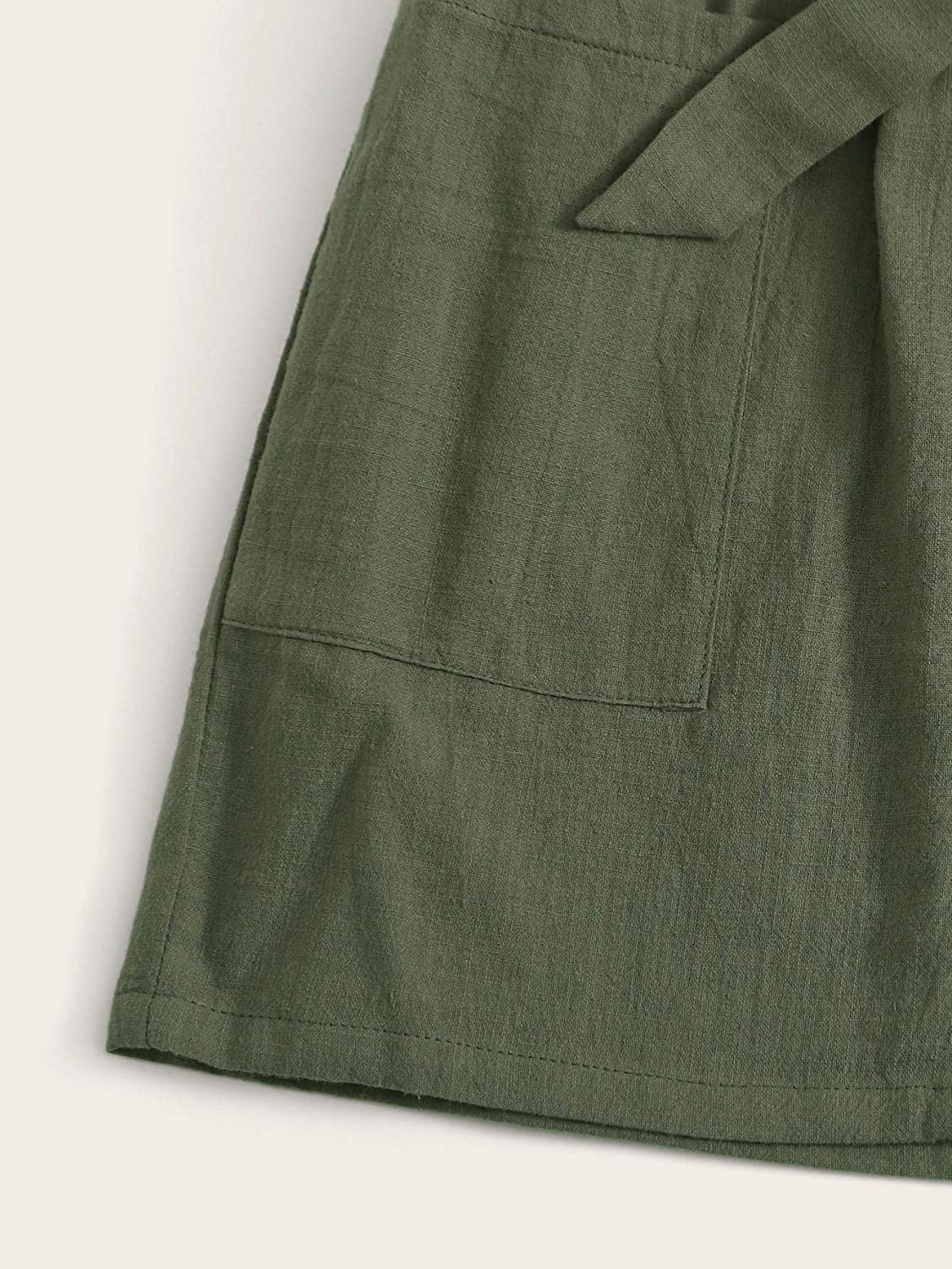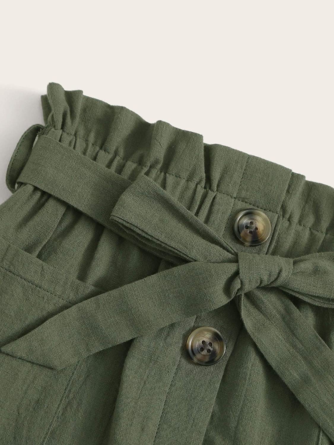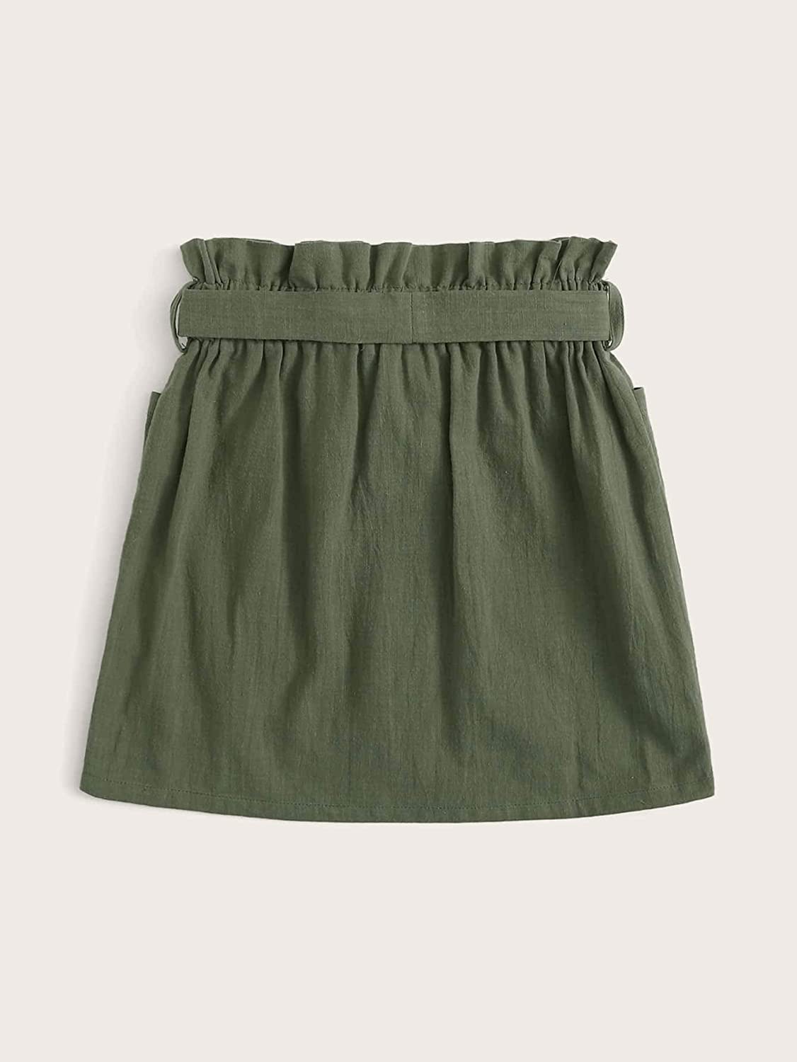 SOLY HUX Girl's Paper Bag Waist Button Front Pocket A Line Belted Skirt