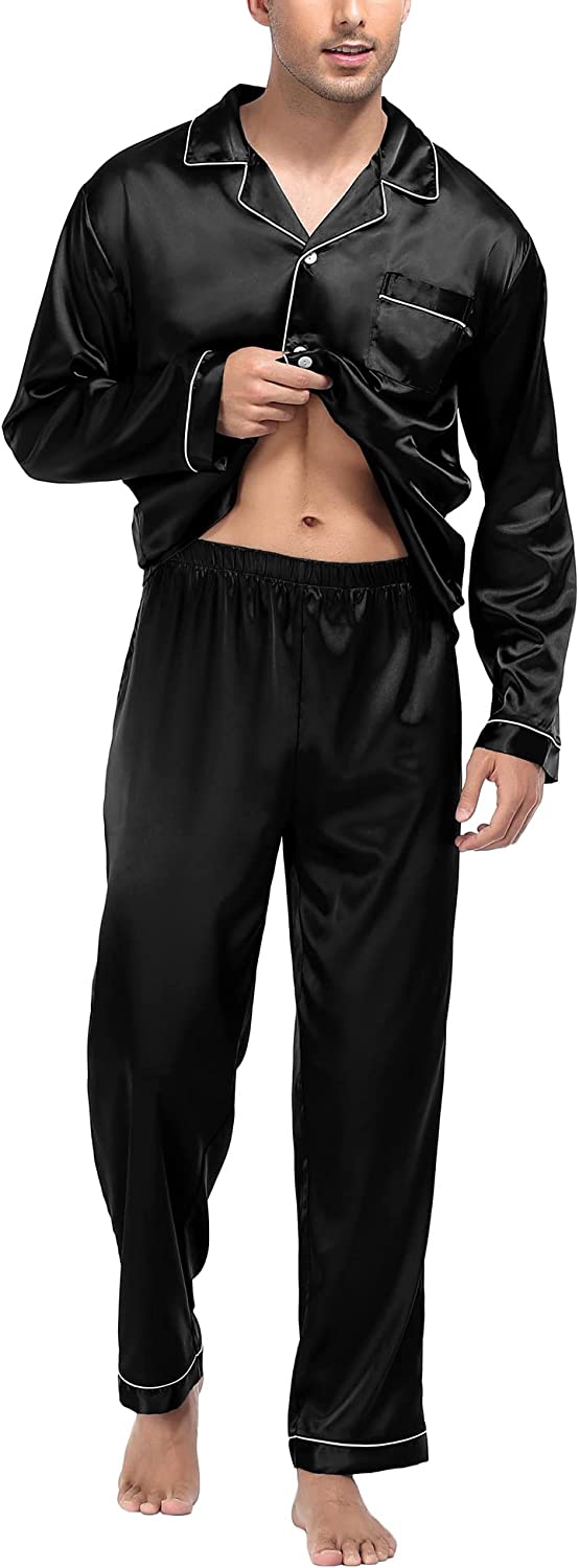 • OCCASION & BEST GIFT: Nicely tailored Satin Pajama sets are perfect for sleep, wedding, pajama party, and loungewear, or take a free walk in the park. On Halloween, Thanksgiving Day, Christmas, Father's day, a pajama set is the perfect present for your dad, husband, son, or boyfriend