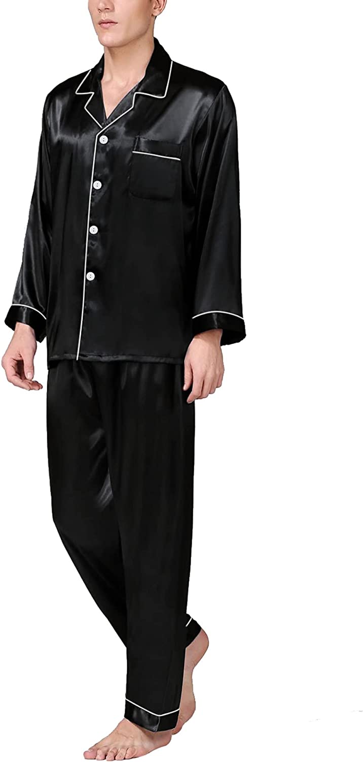 SWOMOG Mens Satin Pajamas Set Button-Down Classic Sleepwear