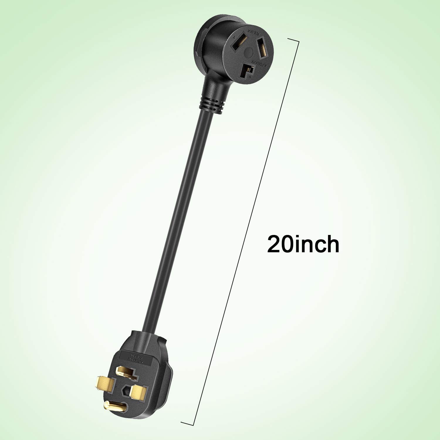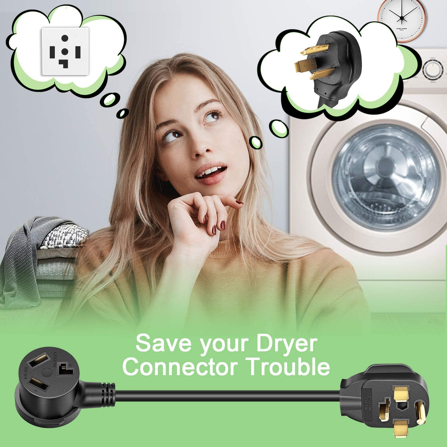 • The dryer plug adapter that meets the UL standard has 104 copper cores and a 600-volt durable insulating PVC protective layer; the copper cores meet the quality requirements of STW 10/3 AWG, and the maximum support 30Amp and 7500 watts of overload.