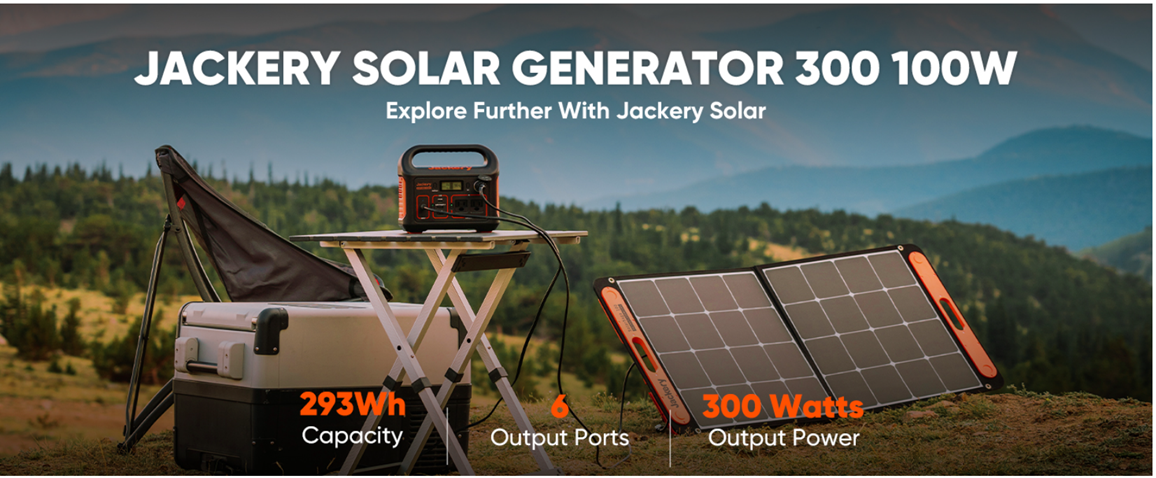 - WHAT YOU GET: 1* Jackery Explorer 300 Portable Power Station , 1* SolarSaga 100 Solar Panel, 1*AC adapter, 1* car charger cable, 1* user guide