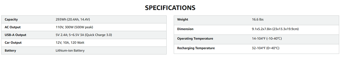 - SAFE & STEADY POWER SUPPLY: Armed with a 293Wh lithium-ion battery pack, the Explorer 300 features 2 Pure Sine Wave AC outlets that deliver stable and safe 300W power. The portable power station weighs only 7.1 pounds. You can simply rest assured in outdoor off-grid activities.