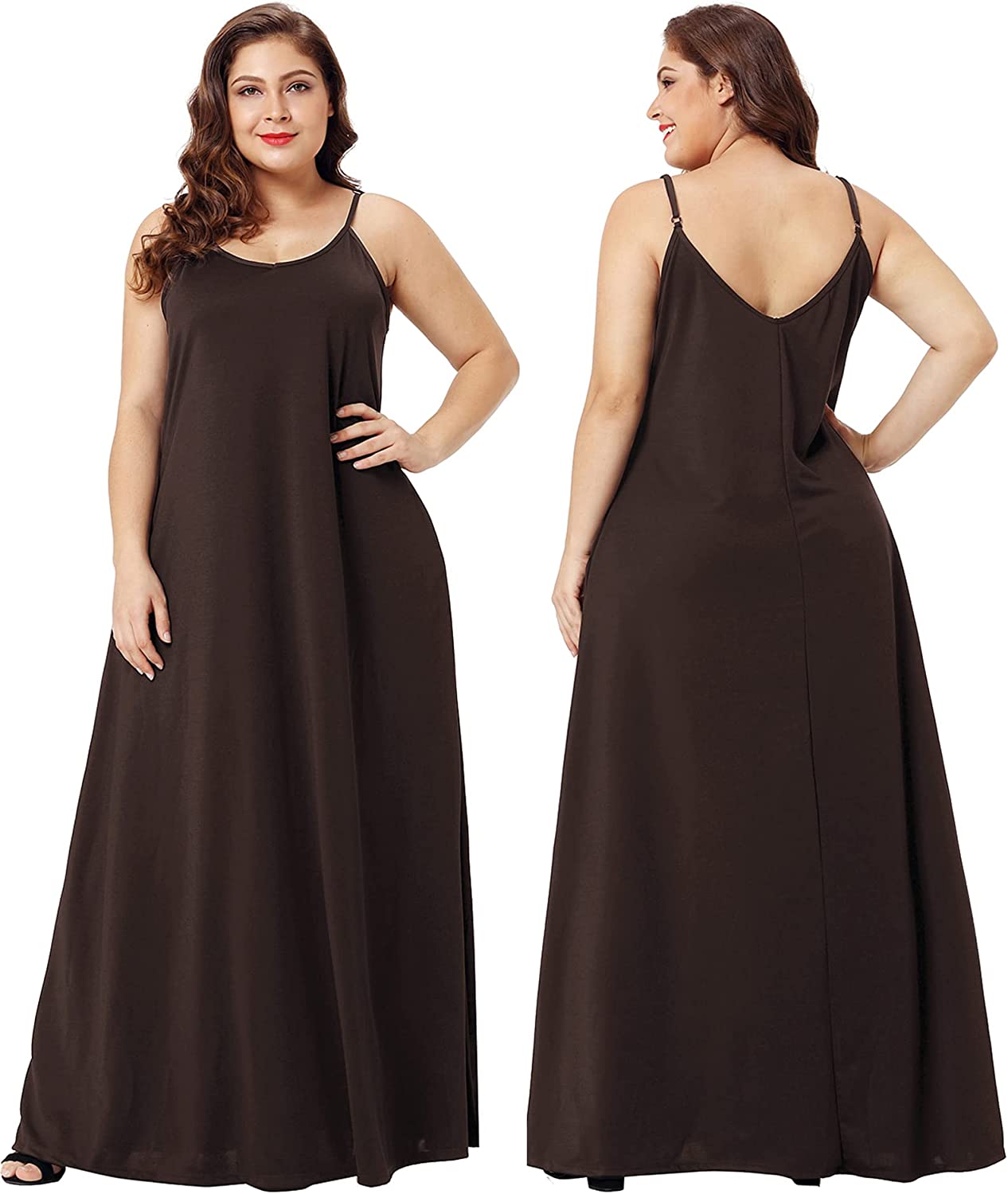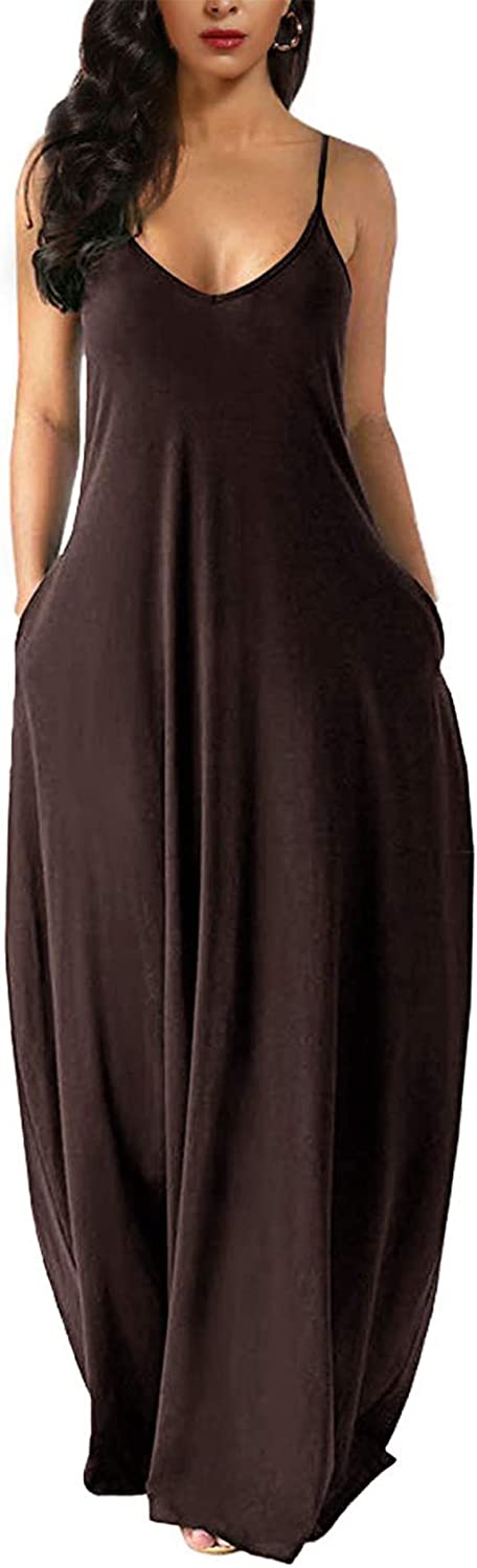 • Features: Adjustable Spaghetti Strap, Scoop Neck, Loose Fit, Long Floor Length, Side Pockets, Solid Color Dress, Great Fabric, Slim Fit Casual Style.
