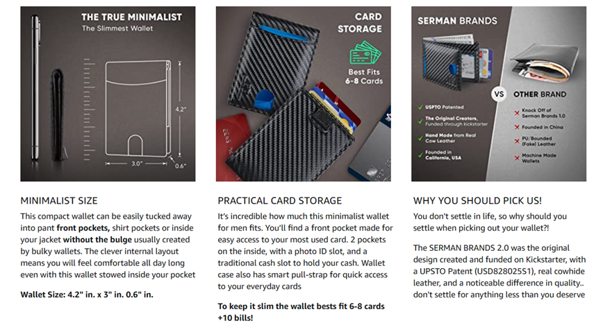 • HOW IT WORKS- At last! A wallet that will meet your everyday needs. The SERMAN BRANDS wallet is equipped with a front pocket made for your most used card. 2 pockets on the inside, with a photo ID slot, and a premium cash slot to hold your cash. Wallet case also has smart pull-strap for quick access to your everyday cards.