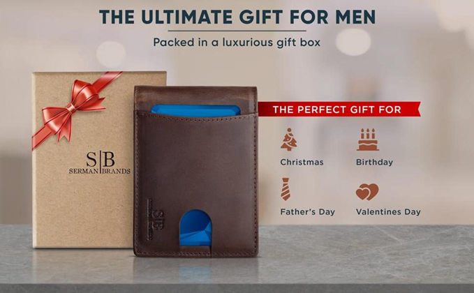 SERMAN BRANDS RFID Blocking Slim Bifold Genuine Leather Thin Minimalist Front Pocket Wallets for Men Billfold Wallet Men Gift