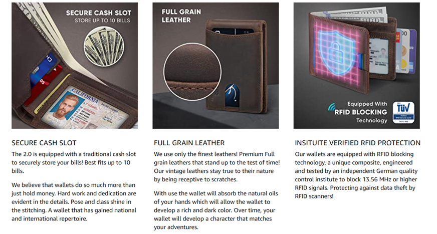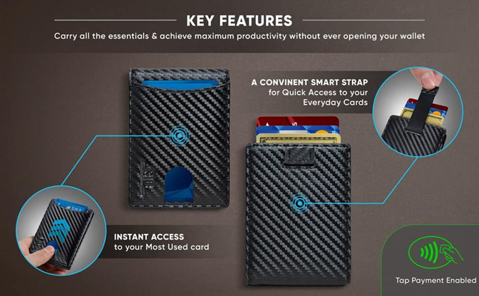 • SAFETY. PRIVACY. SECURITY - Our wallets are equipped with advanced RFID SECURE Technology, a unique metal composite, engineered specifically to block 13.56 MHz or higher RFID signals and protect the valuable information stored on RFID chips from unauthorized scans