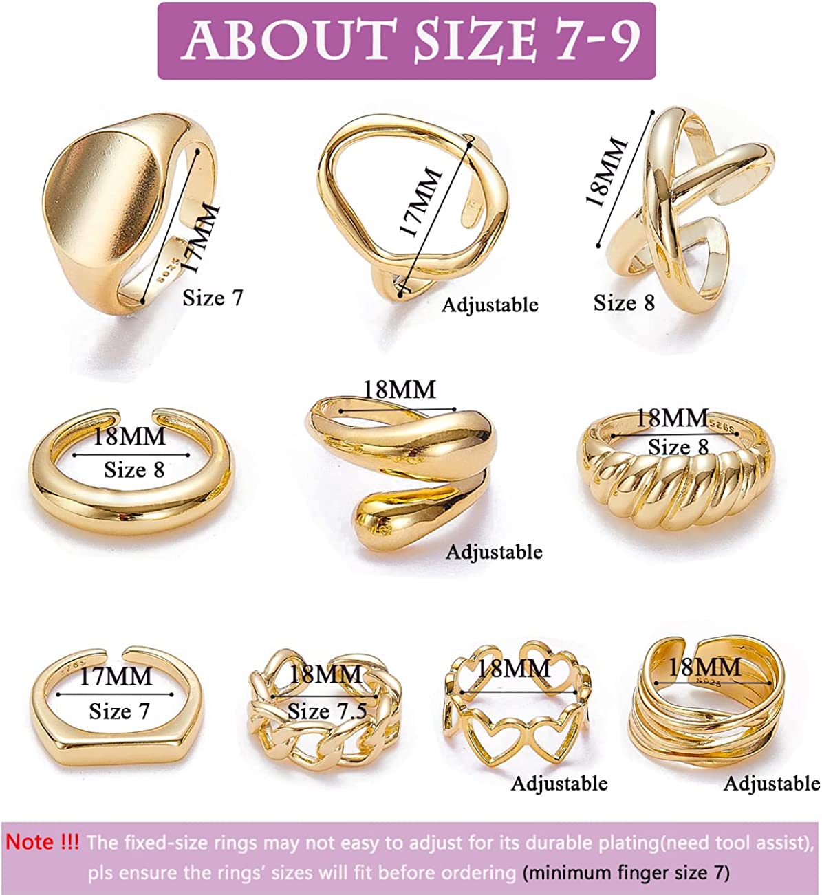 • [Adjustable Gold Thick Ring]---We provide 10 gold chunky ring styles. Their default size is size 7. They can be fine-tuned from size 6 to size 9. The opening can be adjusted to a greater degree for easy wearing.
