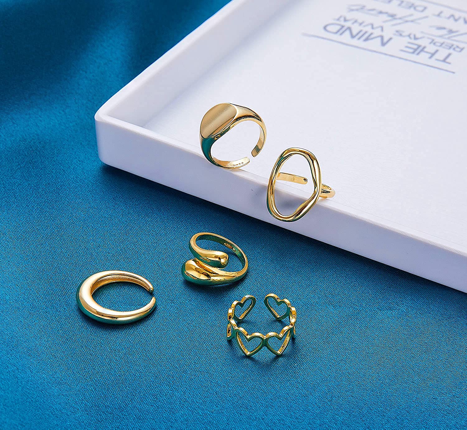 Such a gold ring set, Perfectly Meet your need for wearing on fingers of different size ~