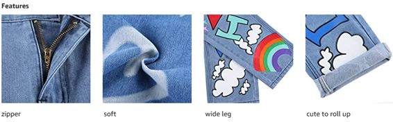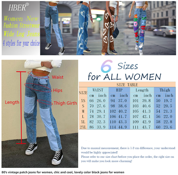 • Package: 1 piece heart print straight leg jeans. Hand or machine wash