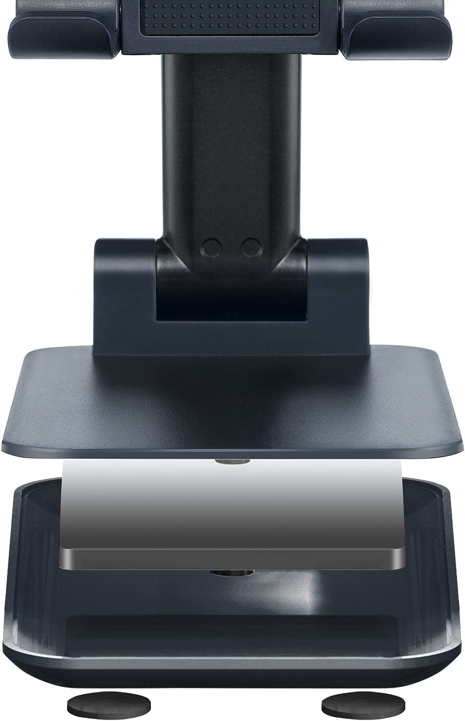 【Stable Base & Fully Protective Anti-slip Silicone Pad】This fully foldable desk cell phone stand holder equipped with a heavier base, and an aluminum alloy rod that makes a lower center gravity, so it’s stable enough to bear your phone. Fully covered top silicone pads and metal weighted anti-slip base well protect your devices from scratches and sliding, easily tap the screen without worrying the phone will tip over or fall off.
