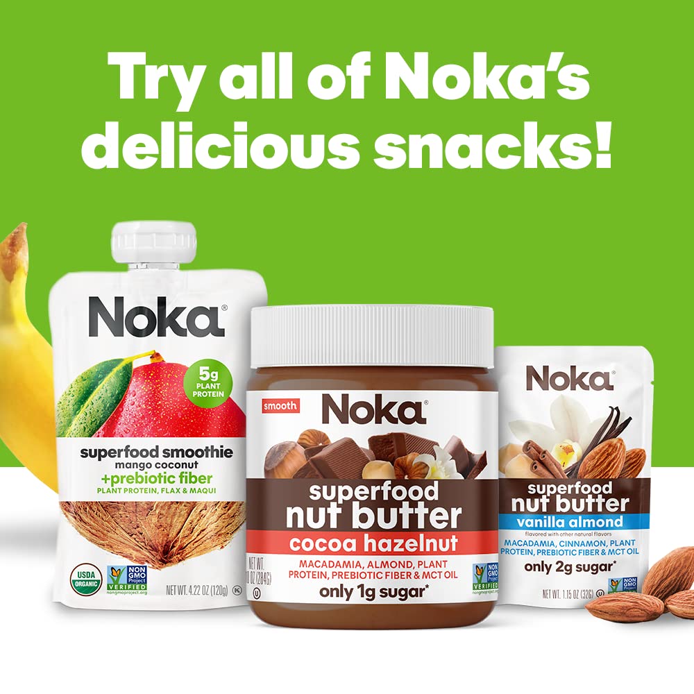 Take Noka Anywhere: Our convenient squeeze packs don't need to be refrigerated and are the perfect size to toss in your bag for an easy breakfast on the go, school snack, work snack, workout snack, trail snack (hiking, trail running, backpacking camping, etc) or meal replacement.