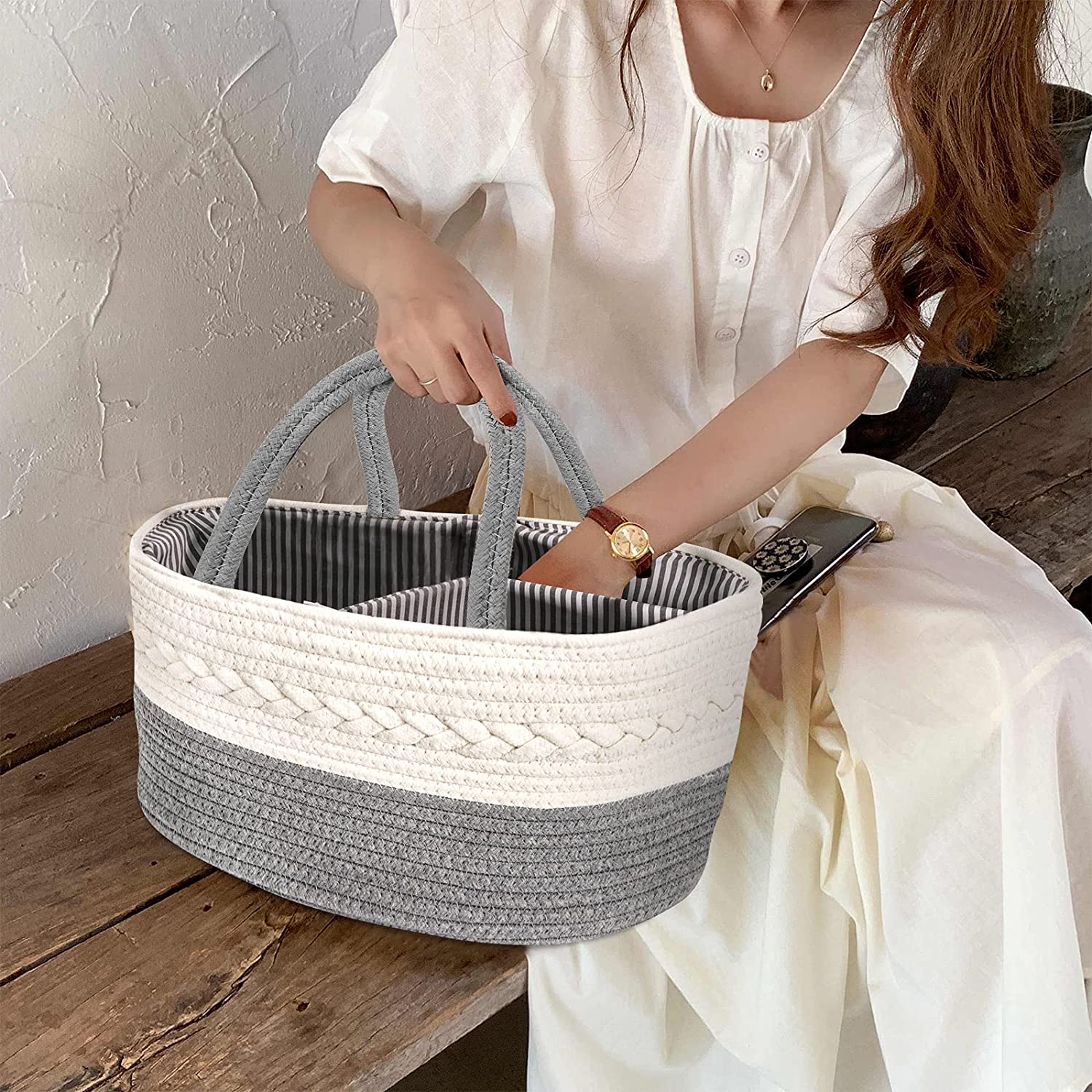 Practical Design-Updated with longer handles, easy to move the baby diaper caddy around the house. Designed with a removable divider, you can create compartments in the baby caddy organizer or remove the divider and use the baby basket for any number of things.