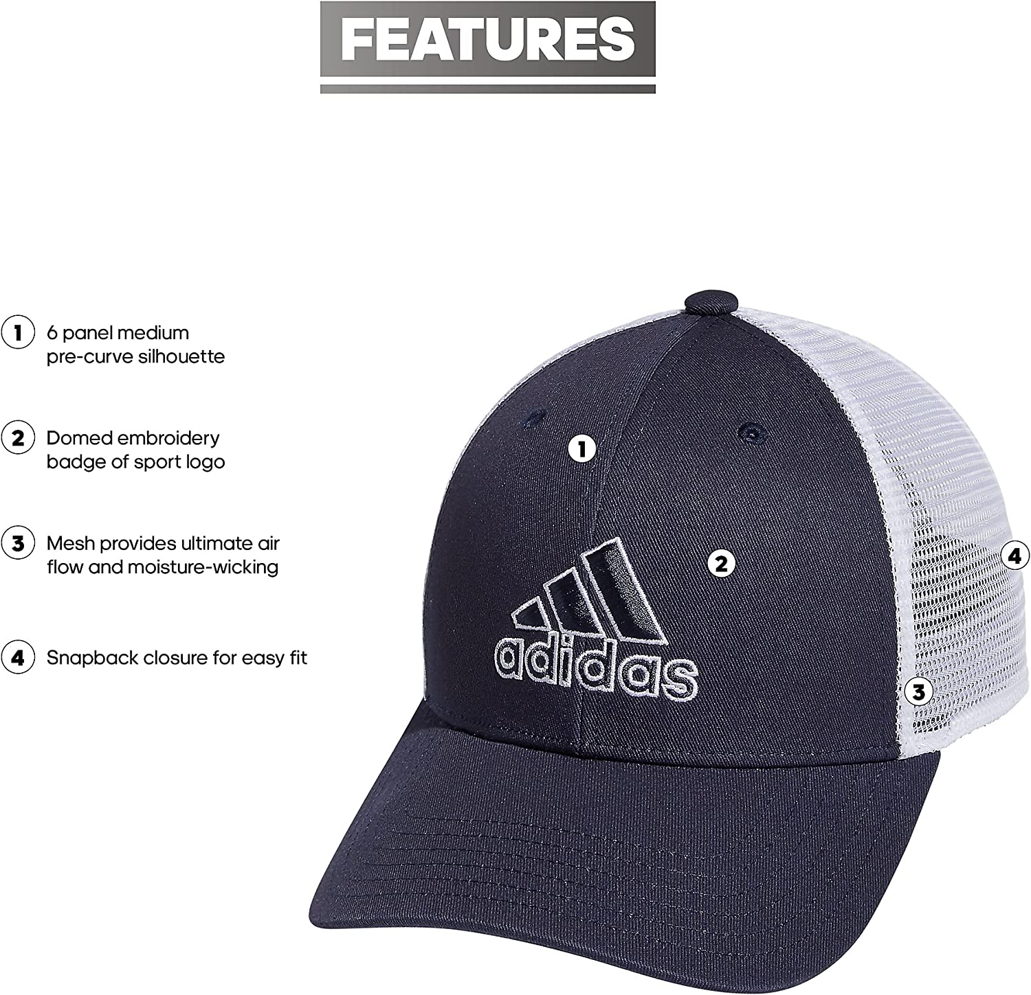 Keep the sun out of your eyes and your focus on your workout in this men's hat. Mesh panels provide air flow to move heat and moisture away from you. An embroidered, color-filled adidas Badge of Sport stands out in front.