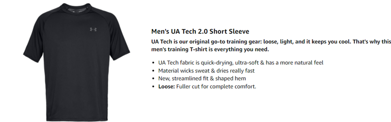 UA Tech fabric is quick-drying, ultra-soft & has a more natural feel. Material wicks sweat & dries really fast. New, streamlined fit & shaped hem. UA Tech™ is our original go-to training gear: loose, light, and it keeps you cool. That's why this men's training T-shirt is everything you need. Loose: Fuller cut for complete comfort. TALL Sizes: All tall sizes are 2”/ 5 cm longer than regular sizes. Sleeve lengths are adjusted proportionately depending on silhouette.