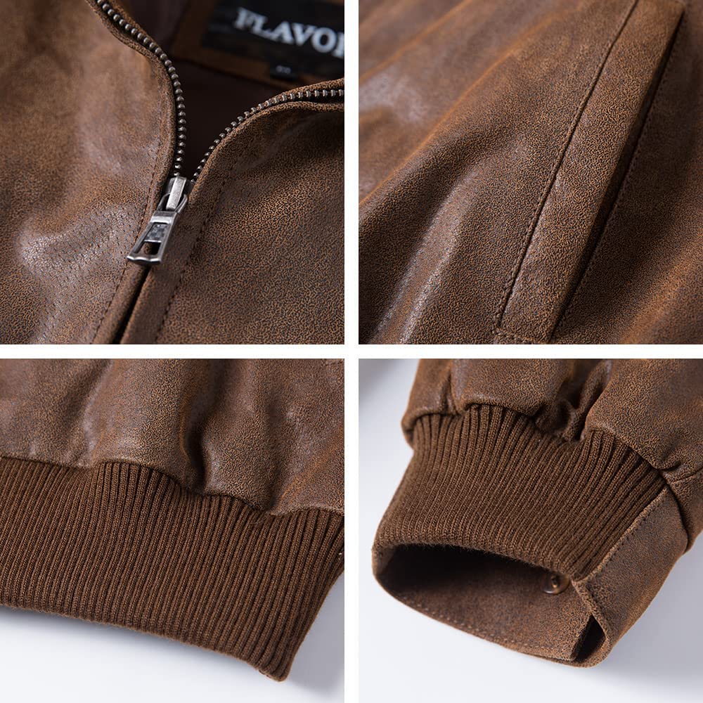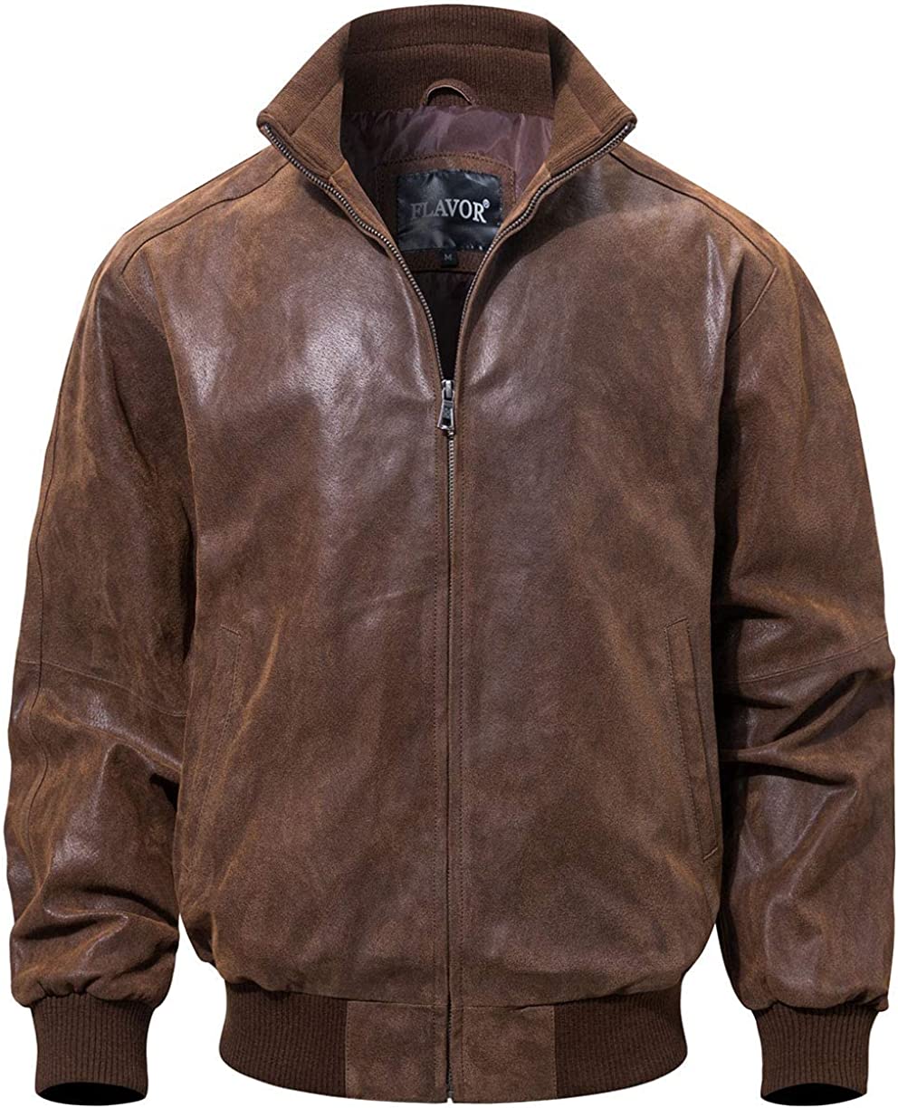 FLAVOR Men's Real Leather Bomber Casual Jacket