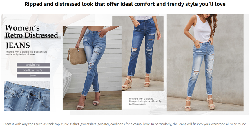Distressed boyfriend jeans can add a trendy and edgy element to your outfit. They are typically loose-fitting with a relaxed cut and are designed to look like they have been worn and torn over time.The distressed details can range from small rips and tears to larger holes and frayed edges, giving the jeans a unique and casual look.