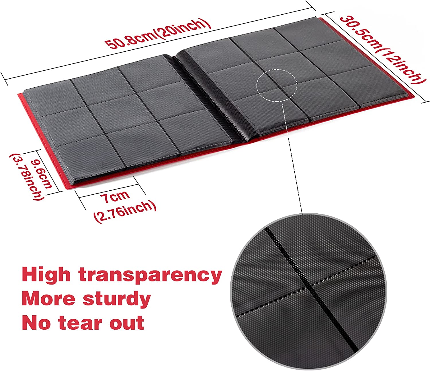 Holding 360 CARDS - 9 pockets double-sided trading card binder, holds up to 360 trading cards with 20 pages total. This product does not contain cards. More pages cannot add.