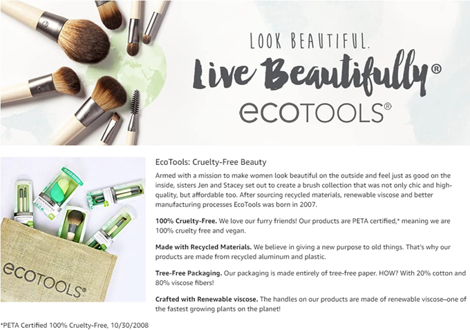 • 100% Cruelty Free and Vegan - EcoTools products are never tested on animals
