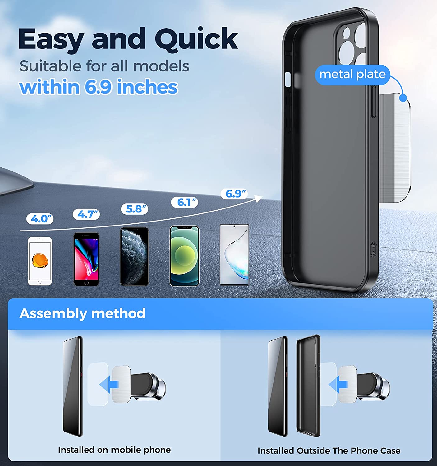 ?【Wide Compatibility】Unlimited in the size of phone, this magnetic car holder is compatible with all smartphones, GPS, with thick cases. Compatible with iPhone 14 Pro Ma/14 pro /13 Pro Max/13 Pro/13 Mini/12 Pro Max/12 Pro/SE/Xs Max/XS/XR, Samsung Galaxy Note 21/S21 Ultra 5G/20+, LG, Sony and all phones.
