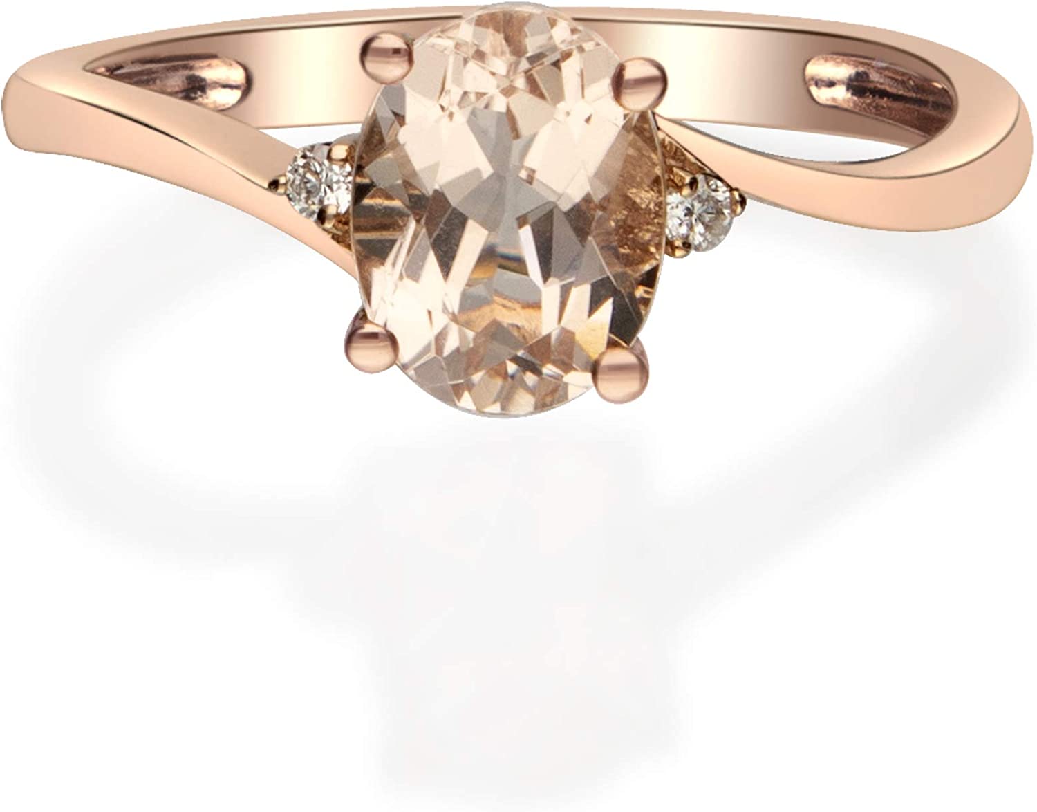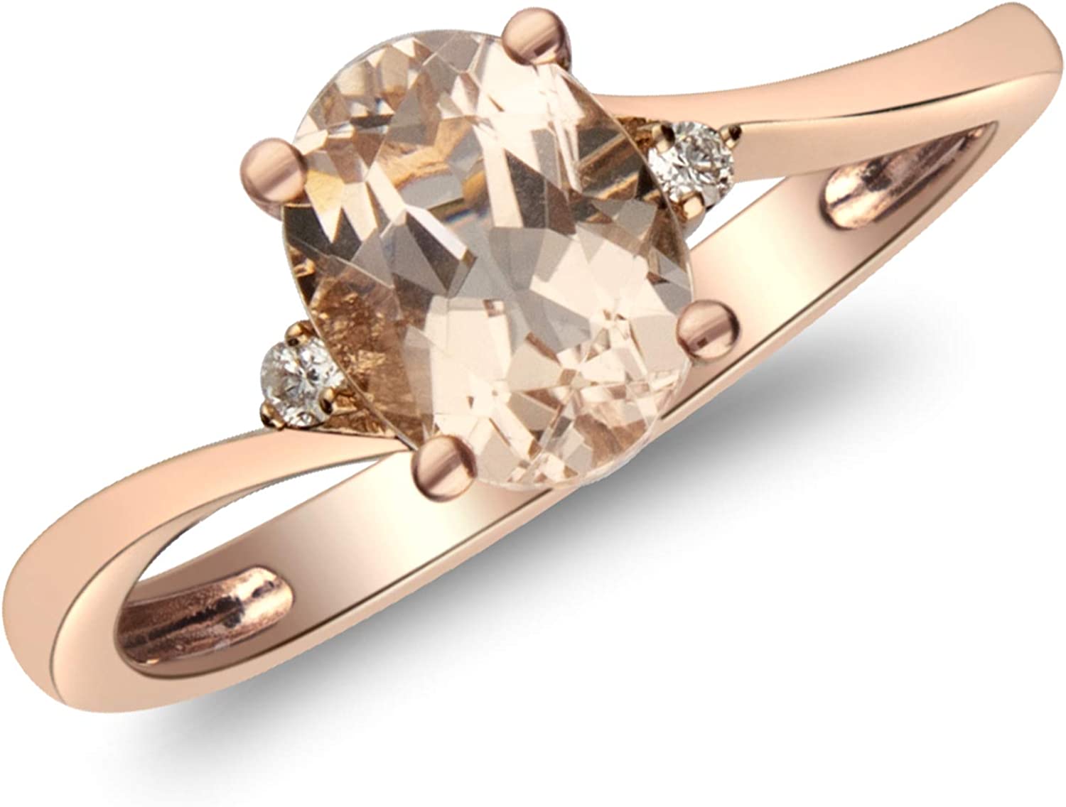 Gin and Grace 14K Rose Gold Genuine Morganite Ring with Diamonds for women | Ethically, authentically & organically sourced (Oval-cut) shaped Morganite hand-crafted jewelry for her | Morganite Ring fo