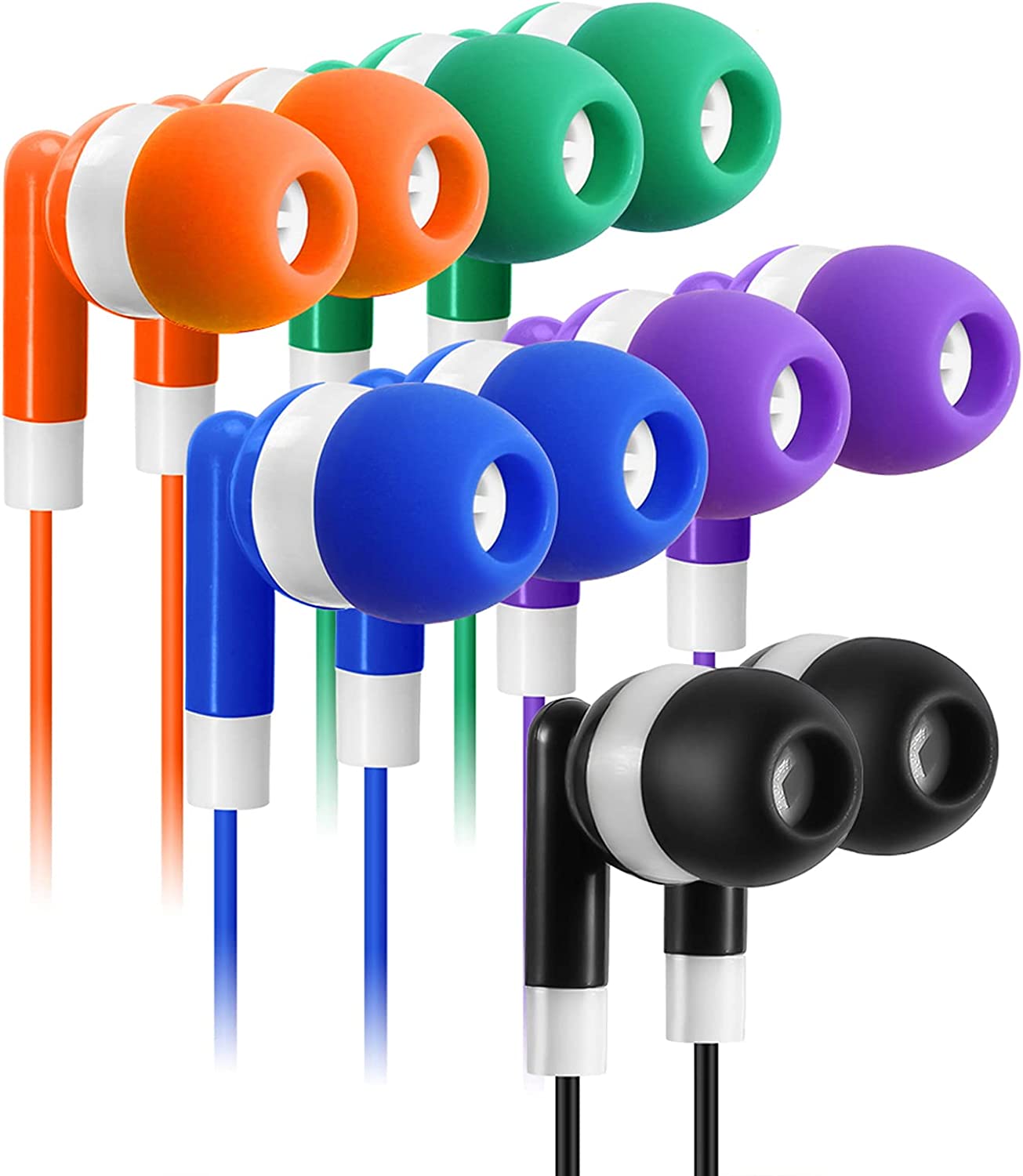 • ★【5 Colors Bulk Earbuds for Students 】5 Arrorted Colors Earbuds:Black,Blue,Orange,Green,Purple.6 Pieces Earbuds for Each Color,Total 30 Pieces Earbuds Earphones in the Package.
