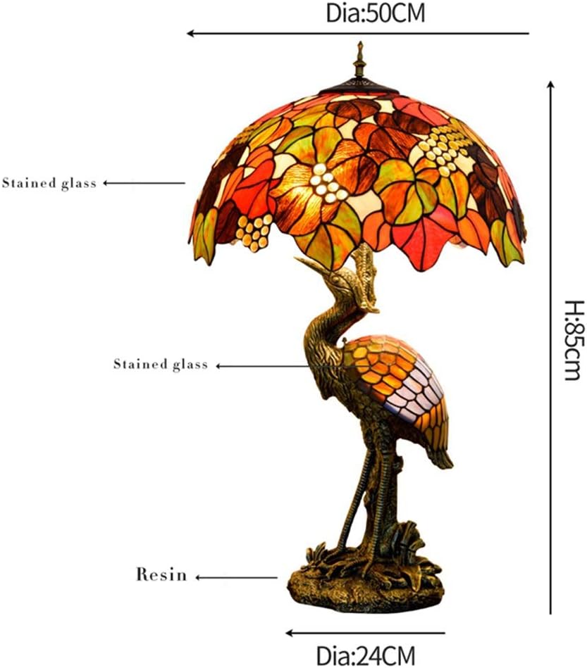 Handmade Stained Glass Table Lamp 18" Tiffany Style Large Table Lamp Dark Red Brown Grapes Desk Lamp Creative Antique Light Base for Living Room Study Bedroom Table Lamp (Color : Female)