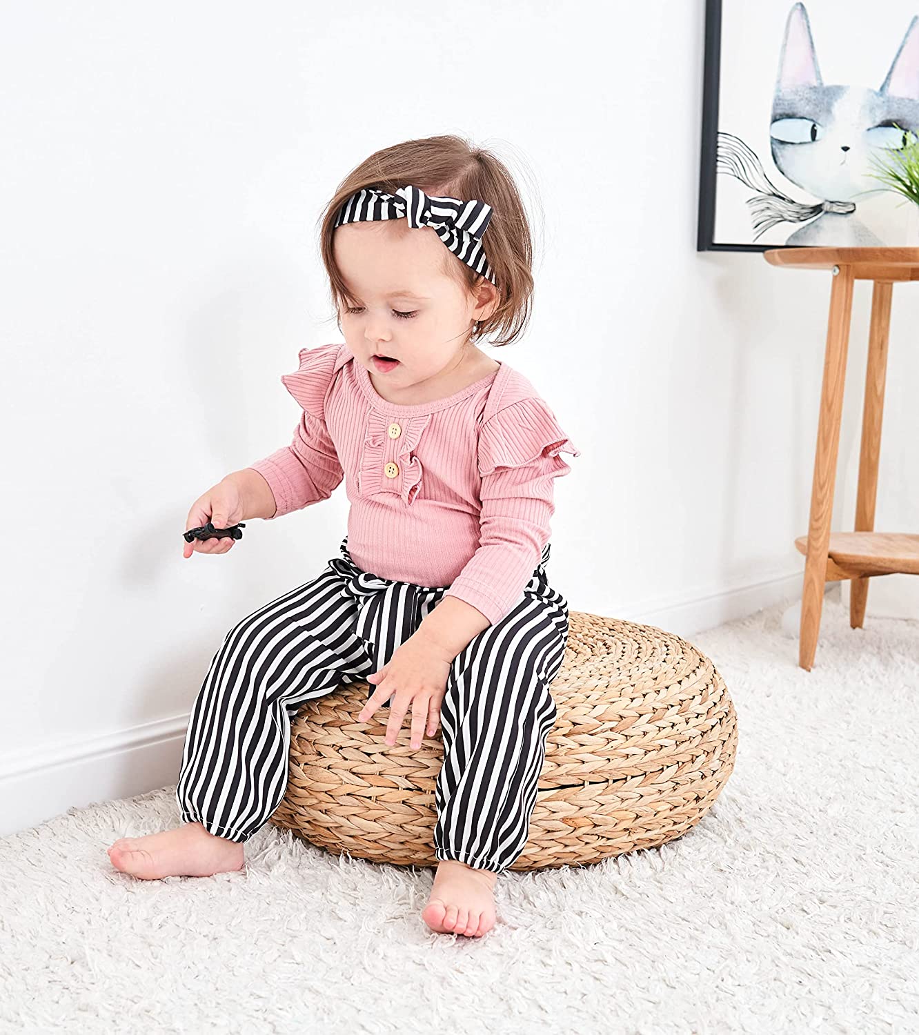 Package included: 1 x long sleeve romper + 1 x Striped Pants+1 x Headband.