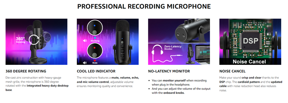 • 【Real-Time Monitor】The desk microphone's 3.5mm stereo headphone output provides direct, latency-free monitoring ! It allows you to monitor the microphone input in real time. Good for home studio, Home Karaoke, Gaming, Singing, Chatting, Smule, Garageband, Skype, Discord, Yahoo Recording, YouTube Recording, Google Voice Search, Zoom meetings, Online Class and Live Stream.