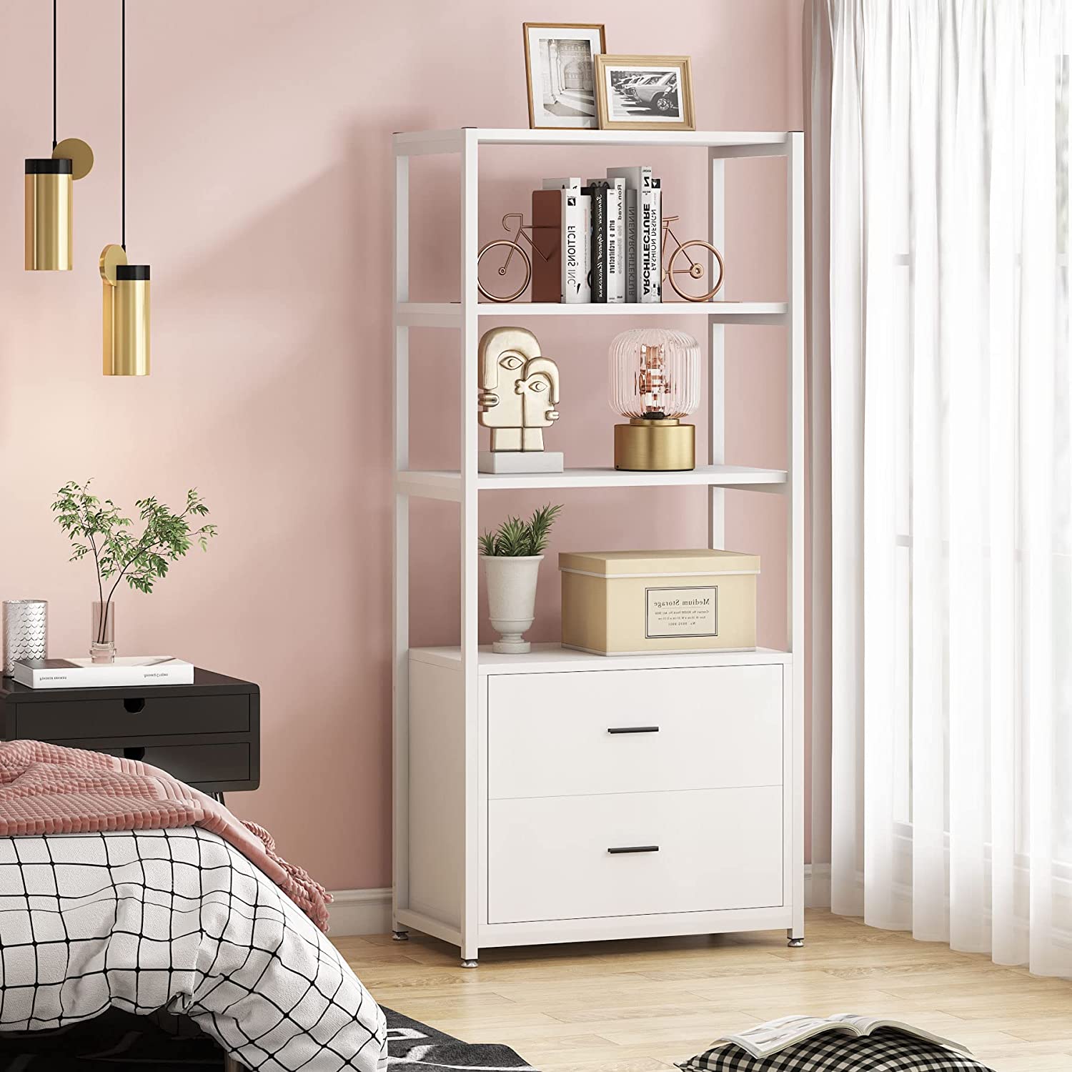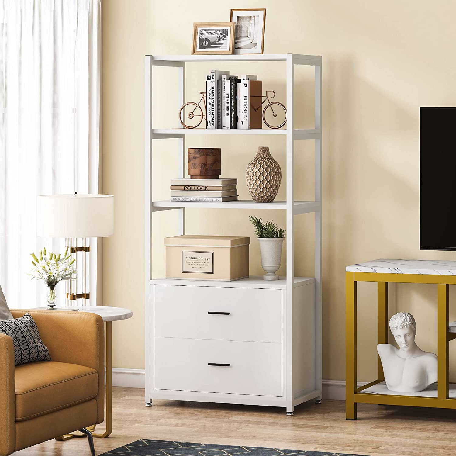 [ 2 Tier-Drawers Storage ] - [Important information: Please check the drawer size before buying. This is not a filing cabinet and can't accommodate A4, F4, letter size and legal sized suspension files.] Designed to meet diversifying storage demands, Tribesigns storage bookcase with 2 tier large drawers provides a private room to preserve your important documents and letters, favorite office supplies