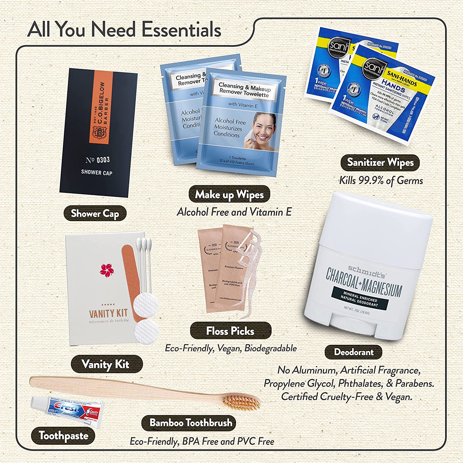ALL YOU NEED in ONE KIT: Especially designed for women’s comfort and health, this natural luxury kit is all you need to bring for your essentials when you are away from home. Do you forget your phone charger or deodorant when you leave? We got you covered. Ideal for Business and Leisure Travel, Vacations, Maternity Hospital bag for labor and delivery, Hospital stays, Carry-On bag, Snow birds, Gym, Health Club, College students and much more. Great for gifts: Don’t know what to gift? Ladies love to get these as a baby shower, holiday, birthday, Mother’s day gift or just because.