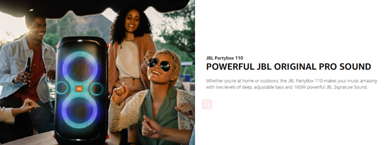 - POWERFUL JBL ORIGINAL PRO SOUND: Whether you're at home or outdoors, the JBL PartyBox 110 makes your music amazing with two levels of deep, adjustable bass and 160W powerful JBL Signature Sound.