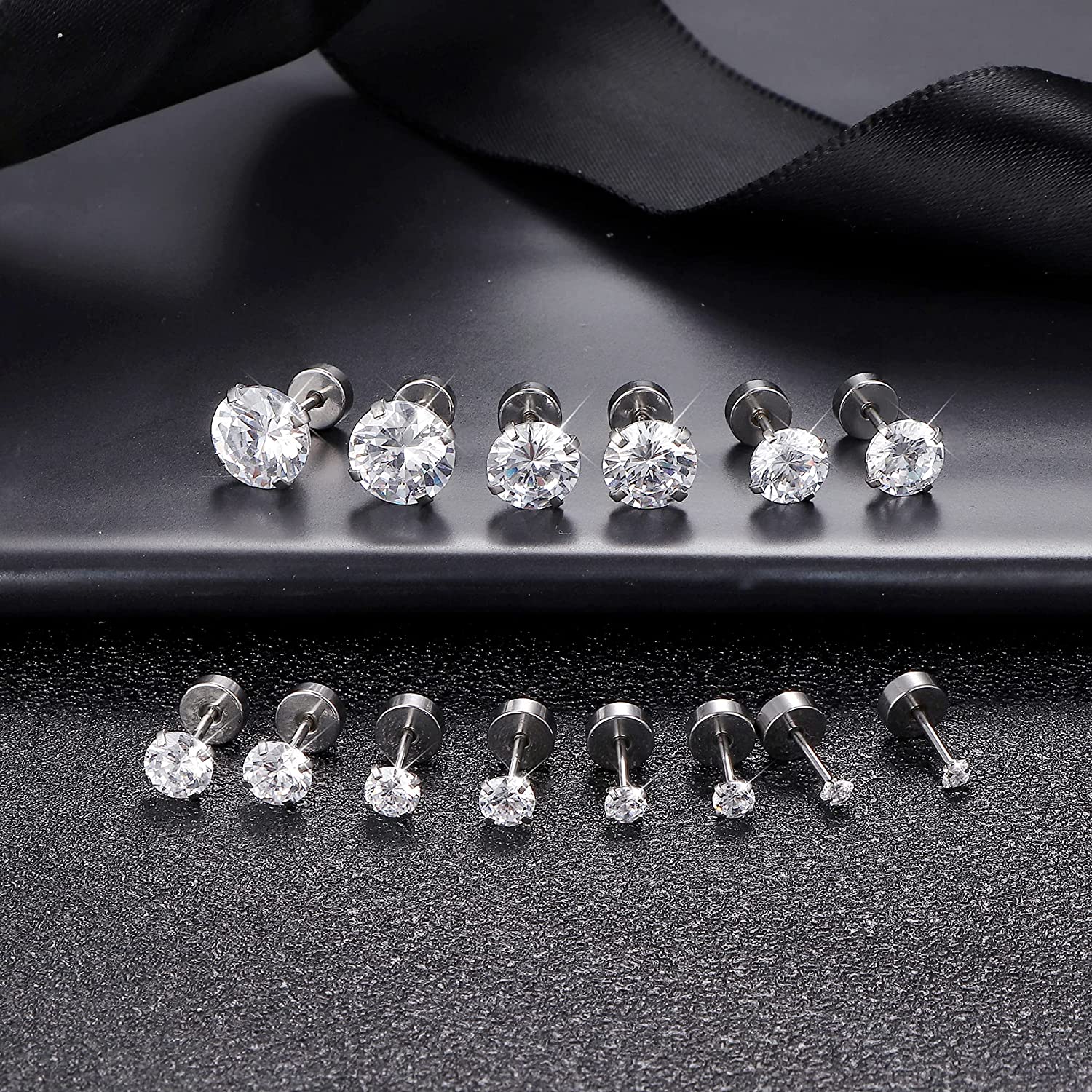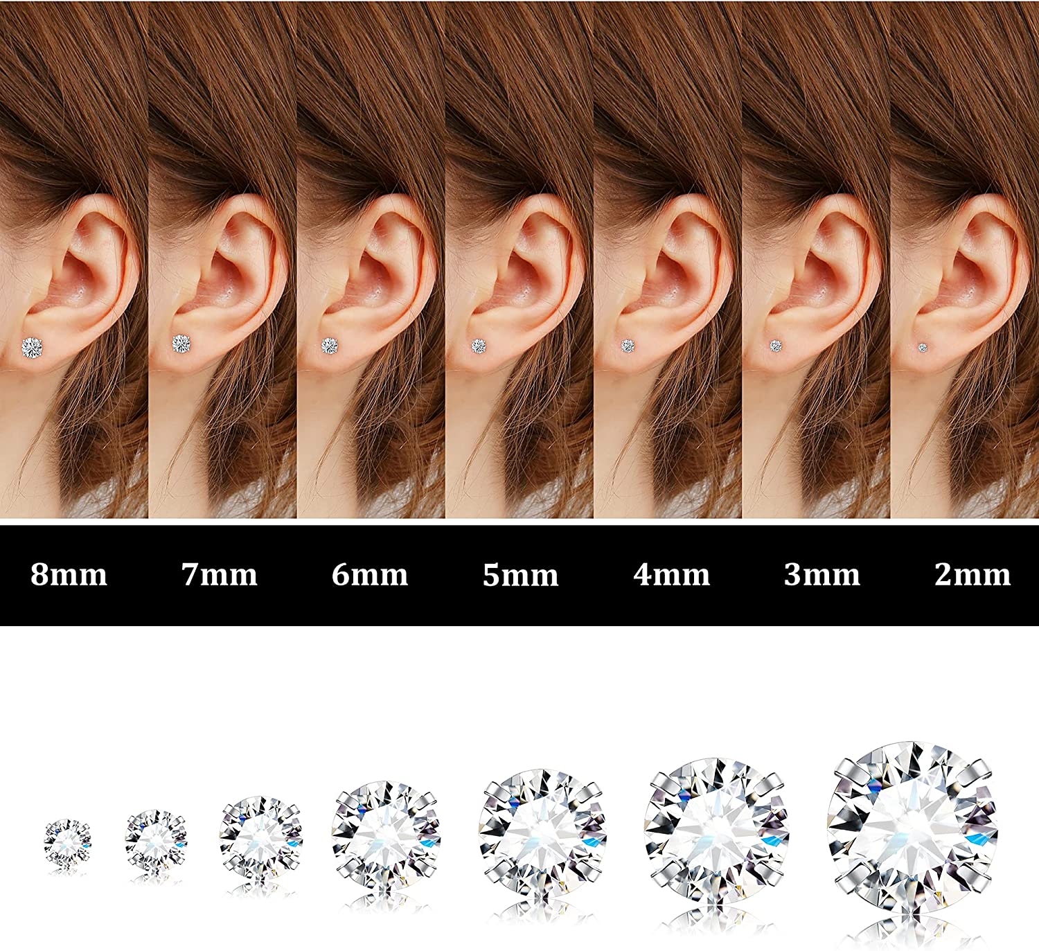 • 【7Pairs Multi Size Stud Earrings】1 Set=7 pairs stud earrings, comes with 7 different sizes round cubic zirconia, 2mm, 3mm, 4mm, 5mm, 6mm, 7mm, 8mm are available, more choices for daily wear. Meet your needs in multiple sizes.