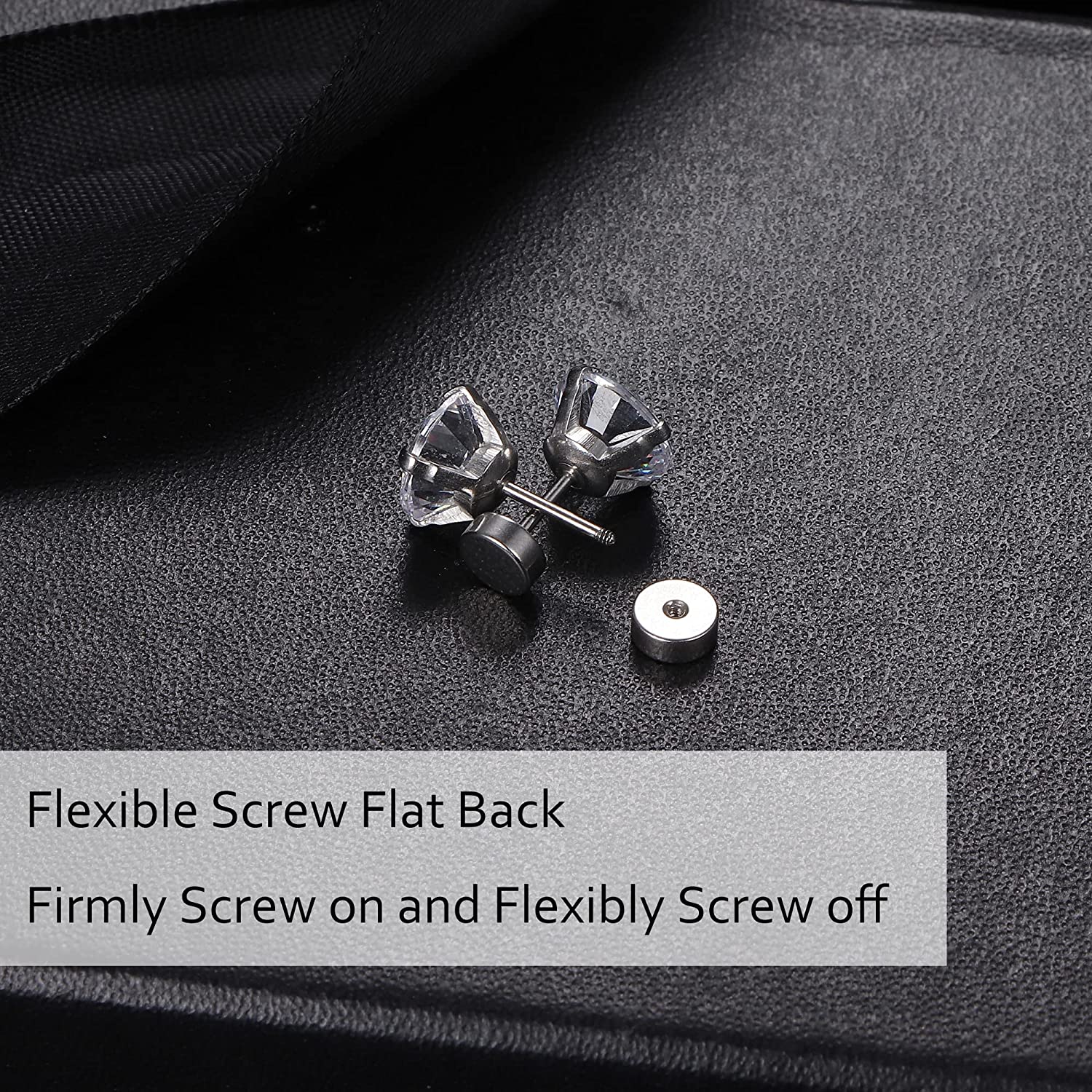 • 【Flatback Stud Earrings】Flatback design for protect skin from painful pokes, can be wear in sleep or sport; Classic barbell design with shiny cubic zirconia well inlaid, simple and delicate. Excellent internal screw thread, firmly screw on and flexibly screw off.